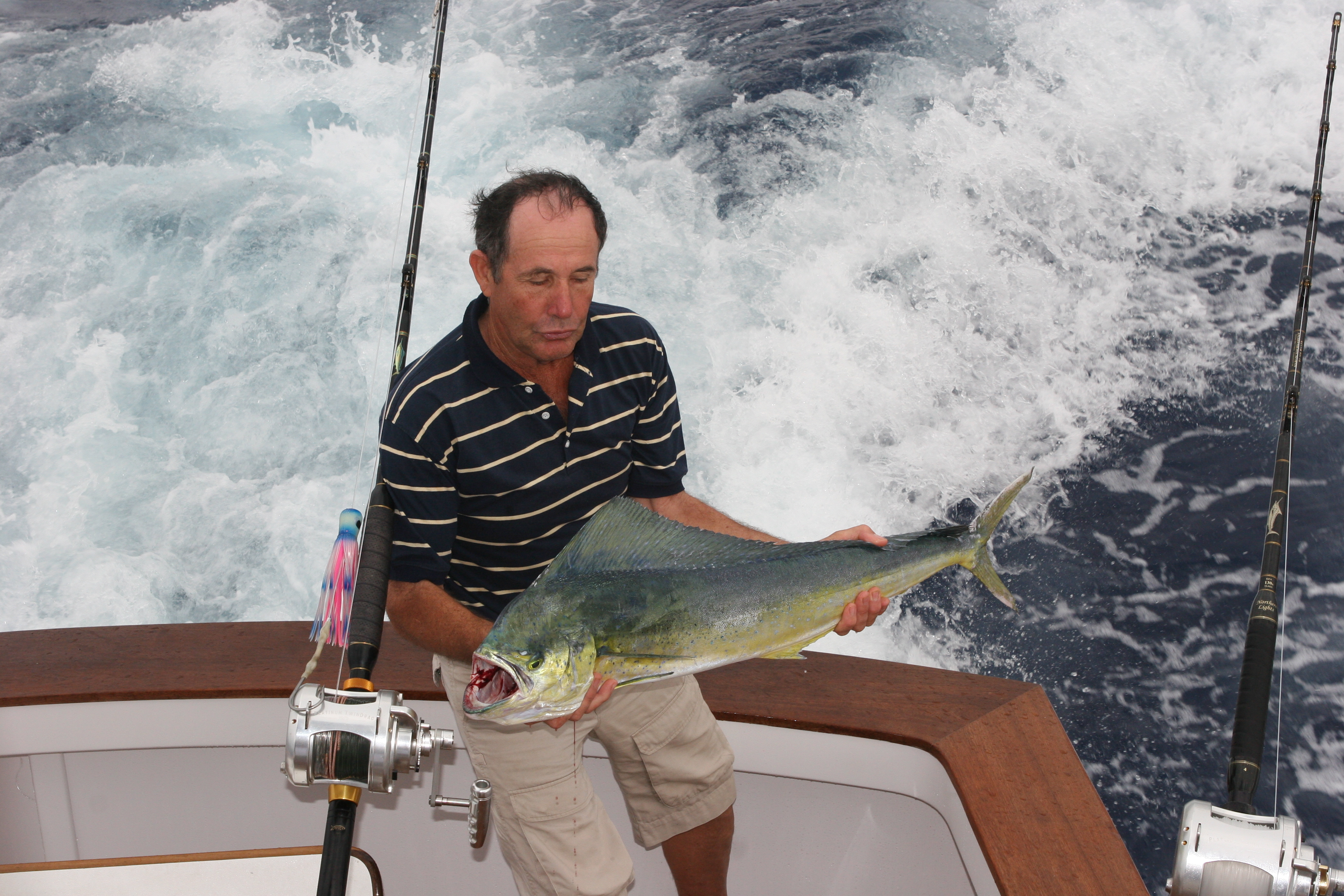 Famous fisherman and good friend Jared Dingo Boshhammer got married here in Kona to Elizabeth this week. We had friends and family out fishing from the wedding party. We caught Dingo’s uncle Rodger a nice mahi and a mutual friend Ed Hawn this little spearfish. It was really good to see Ed here in Kona. We have known each other for a long time through a painting I did for him years ago. The wedding was really nice with family and friends here from Florida and Australia. Dingo and Beth will be living in Florida where Beth is from. We wish them all the best in their new life together.