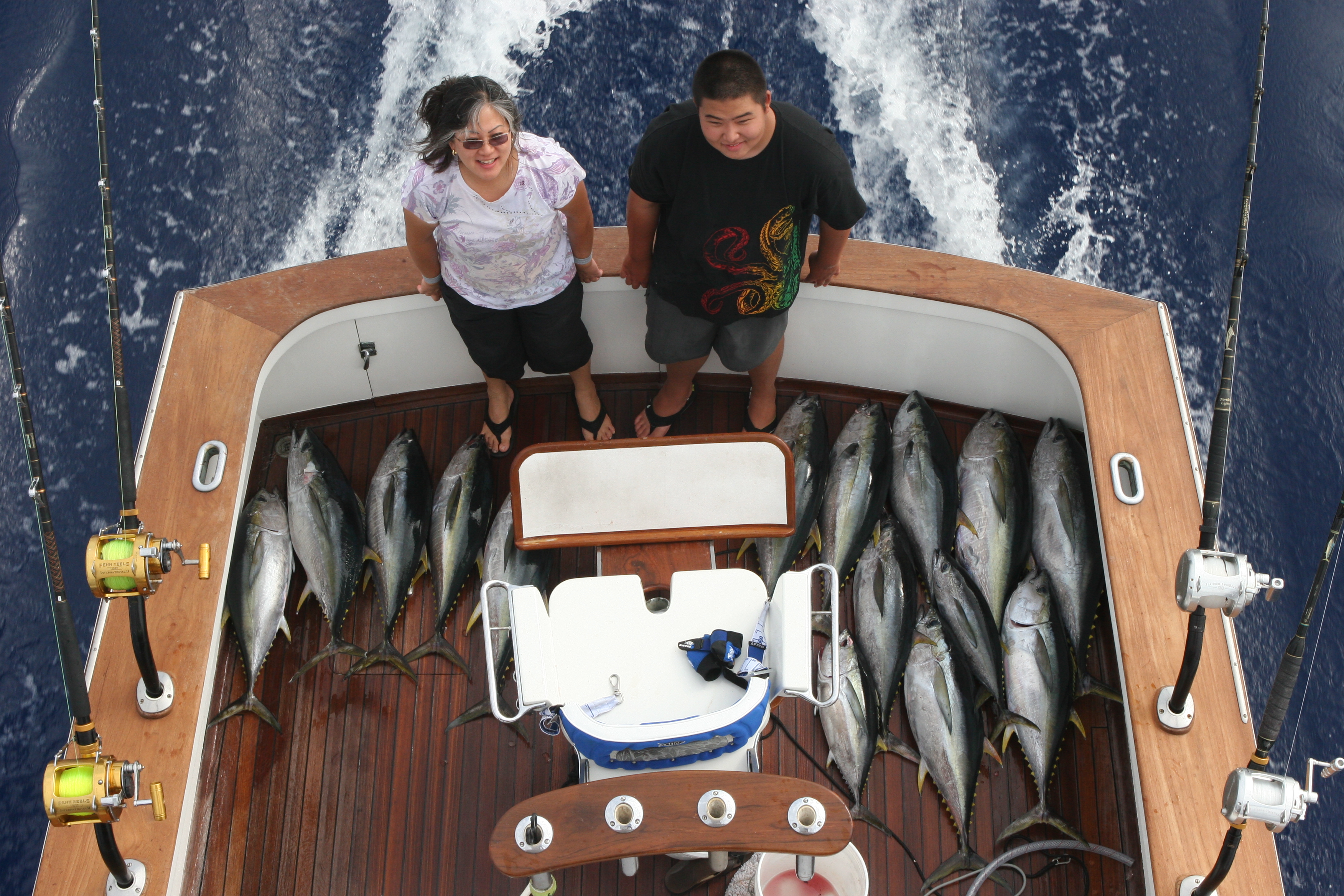 The Mimura’s came over from Maui to look for the big ahi. Todd asked me to call him when the big ones came in. The dolphins have been holding tuna so I made the call. We looked all day for the dolphins and could find them. It was frustrating because if we were able to find them we would have had a good chance to get them one. We were able to get these shibi in the afternoon before we had to come in. The big one will have to be next time. We enjoyed our day with a really nice family. We look forward to trying for the big yellow with them again.
