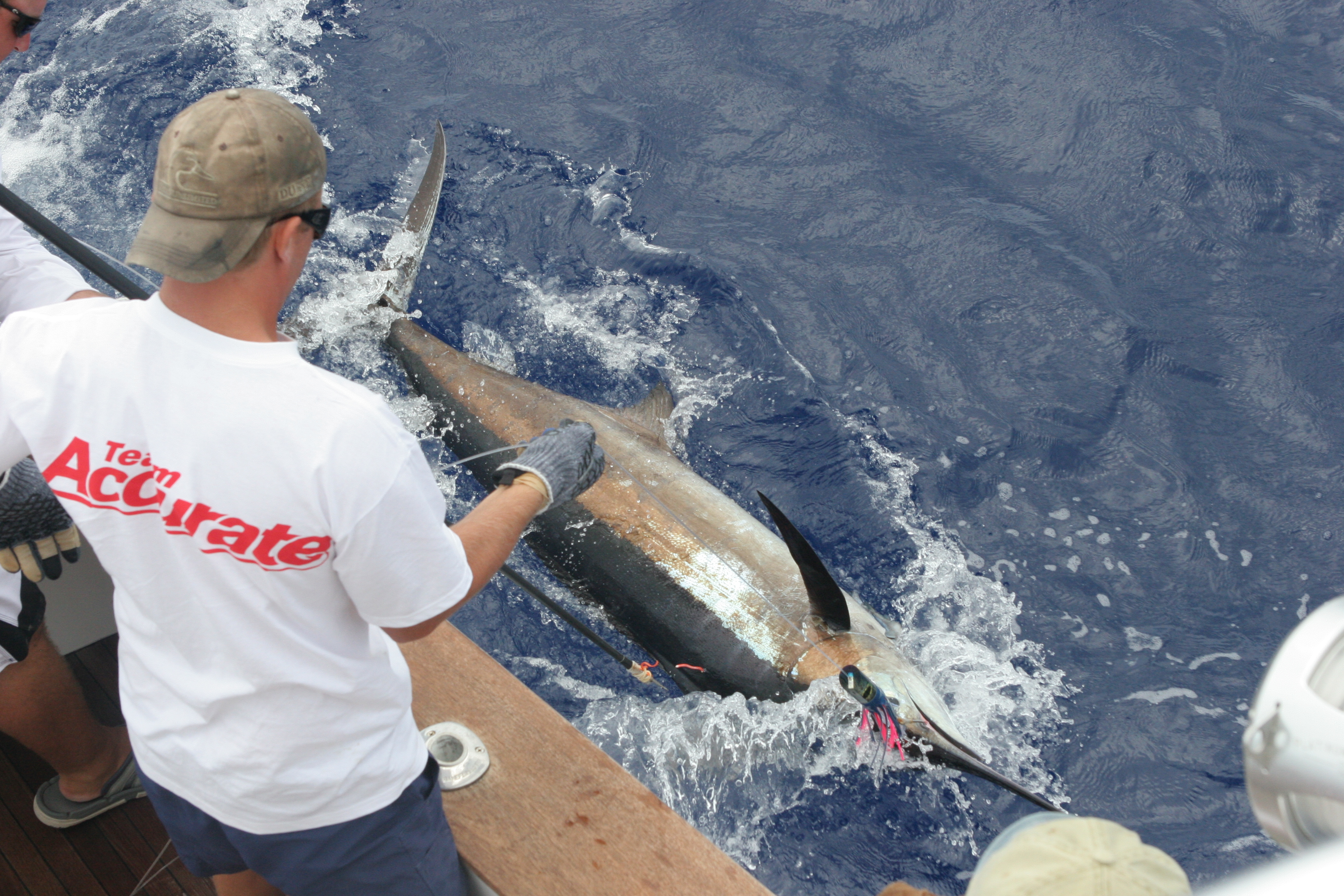 Marlin University Day 3by tracyin 2010 Catches, Hawaii Sport Fishing, Kona Fishing, Kona Fishing Charter, Kona Fishing Photos, Kona Fishing Reporton Posted on August 9, 2010August 29, 2011 Today was a good day everyone saw fish and we managed to catch a spearfish and a small blue. Walker wired his spearfish to complete his billfish slam as a mate! The fish are coming the small blue are here!