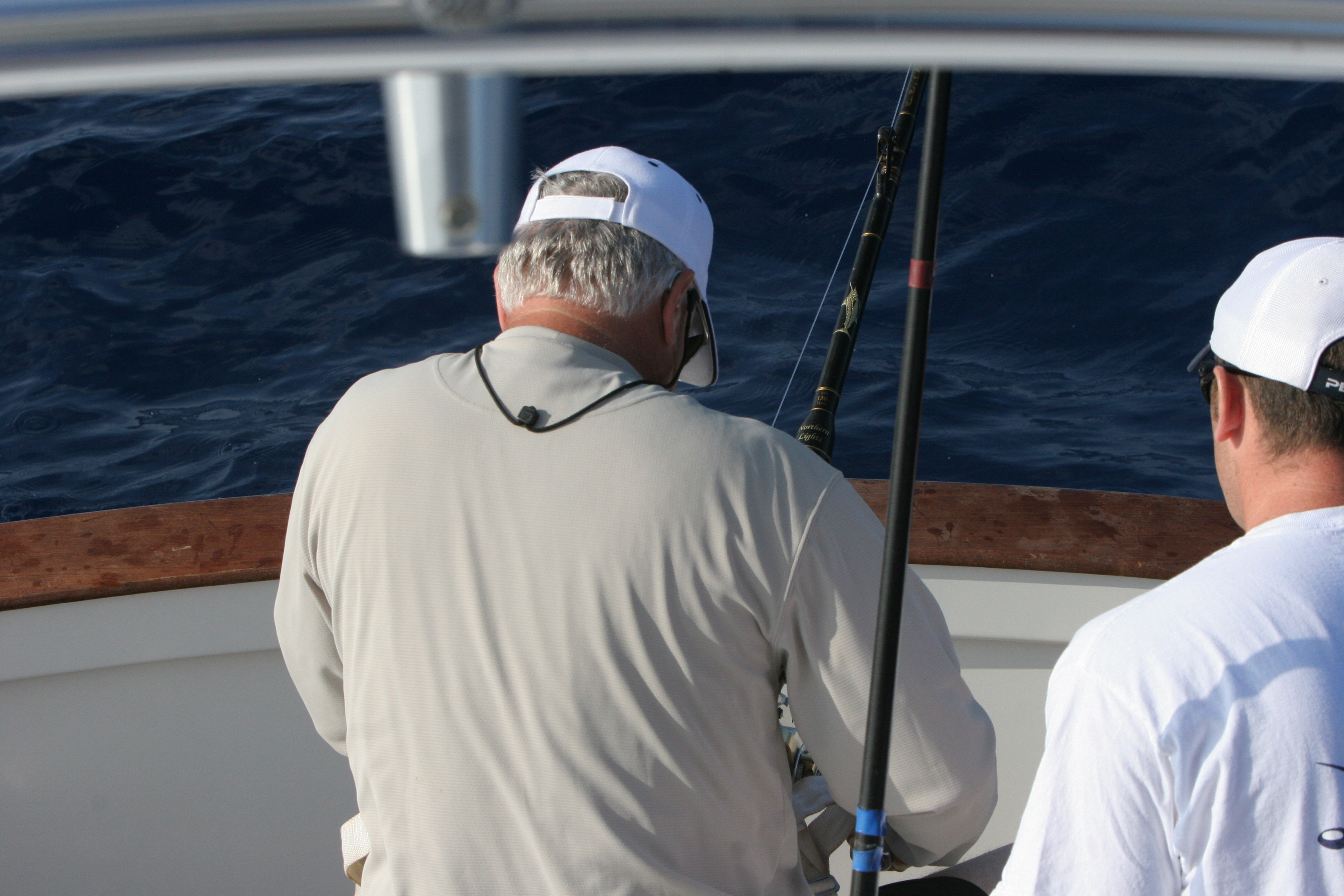 Today we had Angelo on board. We trolled up to the grounds on the 500 fathom line and caught a 120 blue on the stinger. It was good to get that bite stuck because it was the only bite we had all day. This was our 5th fish of the tournament and put us in the lead on time. It was still very close and last year we led until the end and lost in the final hour. I told Oskie and Reece we have to keep it going or we will not be able to hold on.