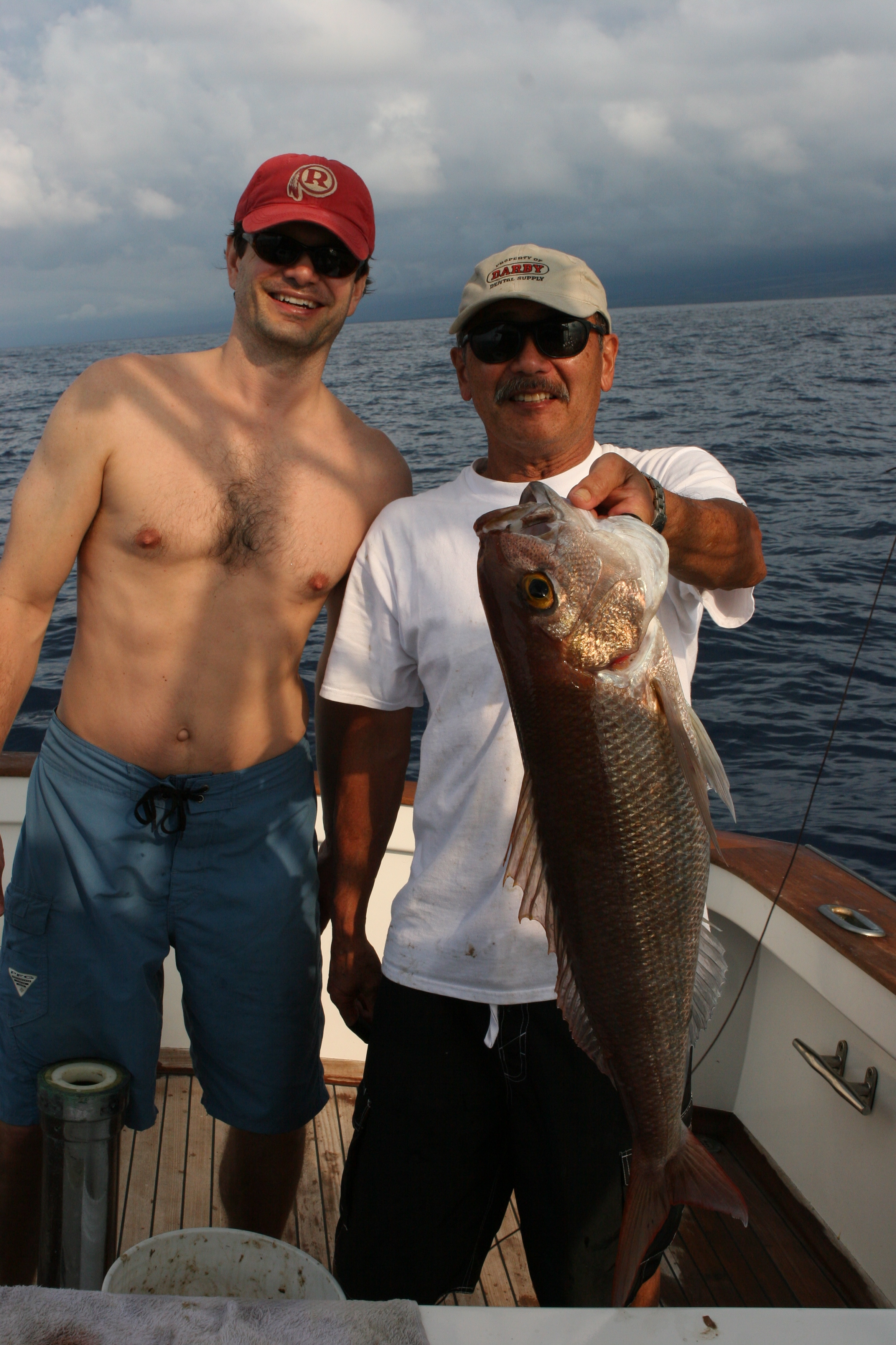 Today my dad Kent and my brother-in-law Doug Hopeman went bottom fishing with me in order to catch fish for the New Years holiday. It is tradition for us to eat the fish that we catch bottom fishing for the holiday. It has been slow so we didn’t expect much. It started off slow but picked up and soon it turned into a great day. It surpassed my expectations by far.This fish is an Opakapaka and weighed 10 pounds. It is rare for us to see them this size now.