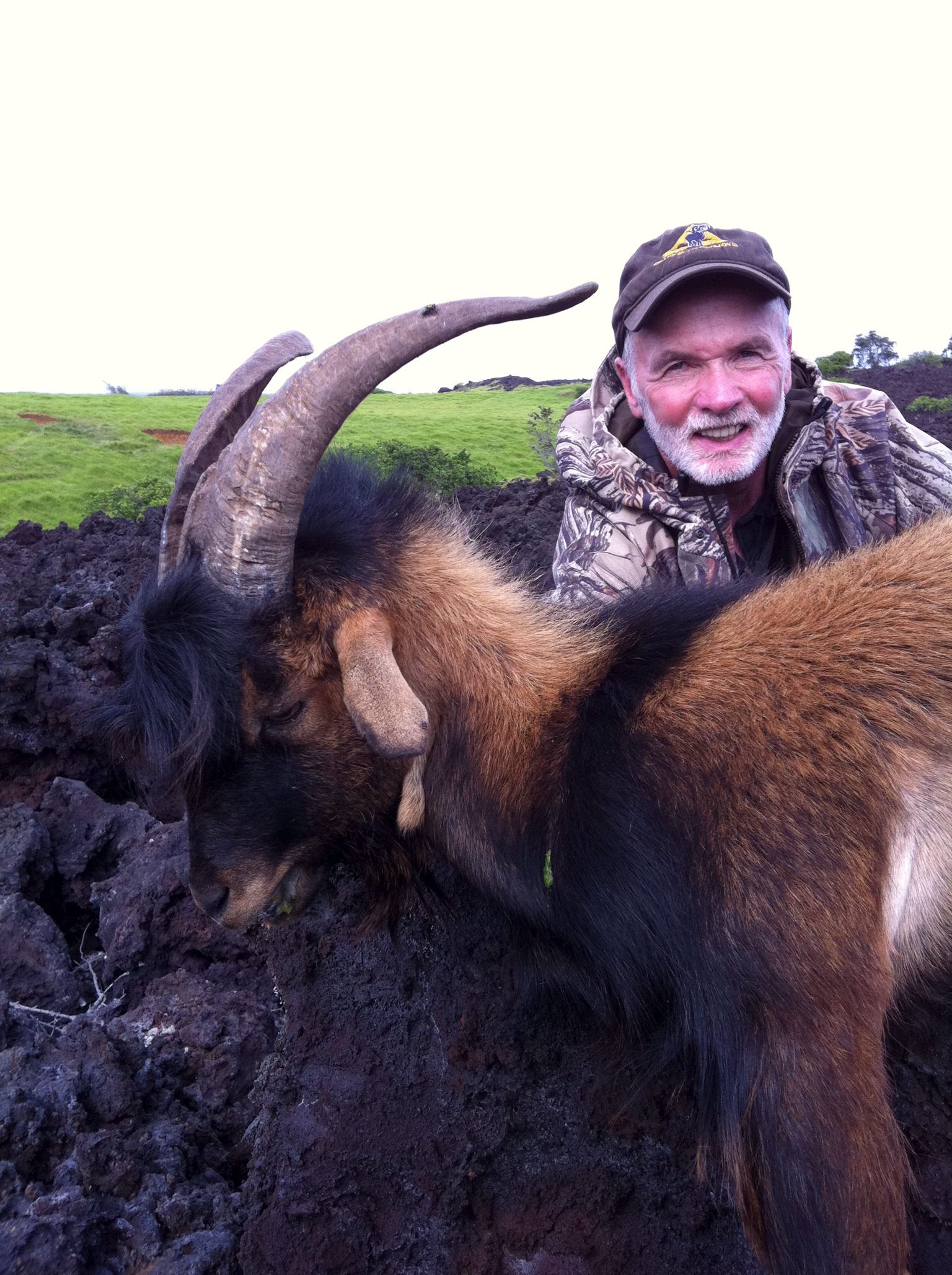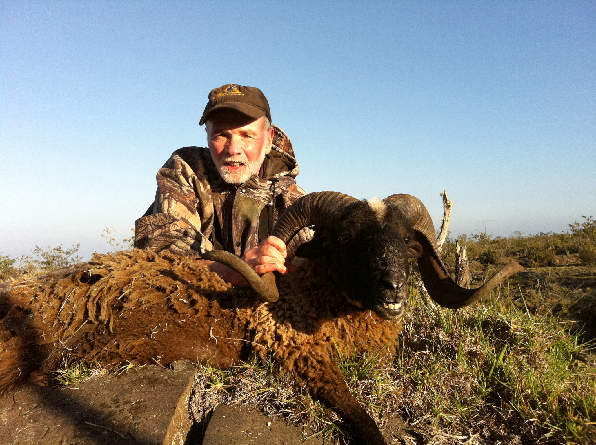 Today I had the honor of hunting with Ed Yates a hunter that has hunted all over the world and is a nominee for the Weatherby Award the highest honor in hunting. The criteria is steep and the travel and miles in the air to cover the 300 species of animals he has hunted all over the world is mind boggling. It was really cool to see the pictures of his hunts and hear the stories of his travels. Our mission was to get him a free range black Hawaiian sheep and a Spanish goat. Ed would then meet Pat Fisher on Lanai where he would try for a Muflon Sheep. We found a bunch of sheep but probably passed on to many looking for a big one. We ended up going up the next day. With time to consider we were lucky to find a nice ram early so we had time to get south to get him this representative Spanish goat. It was a great couple days with a lot of good animals out there.