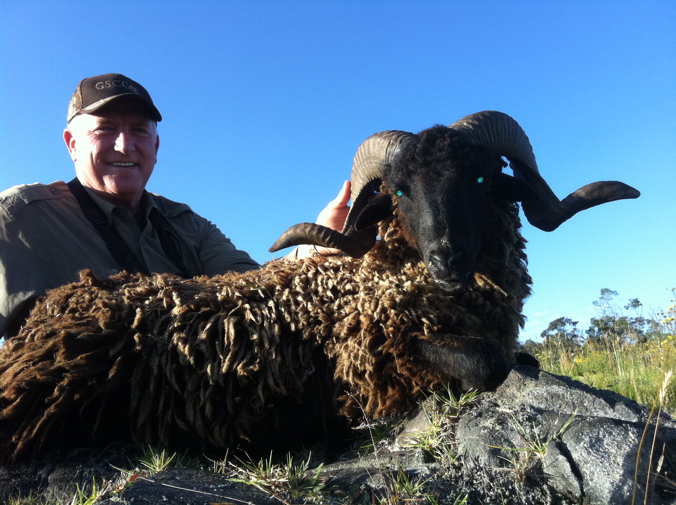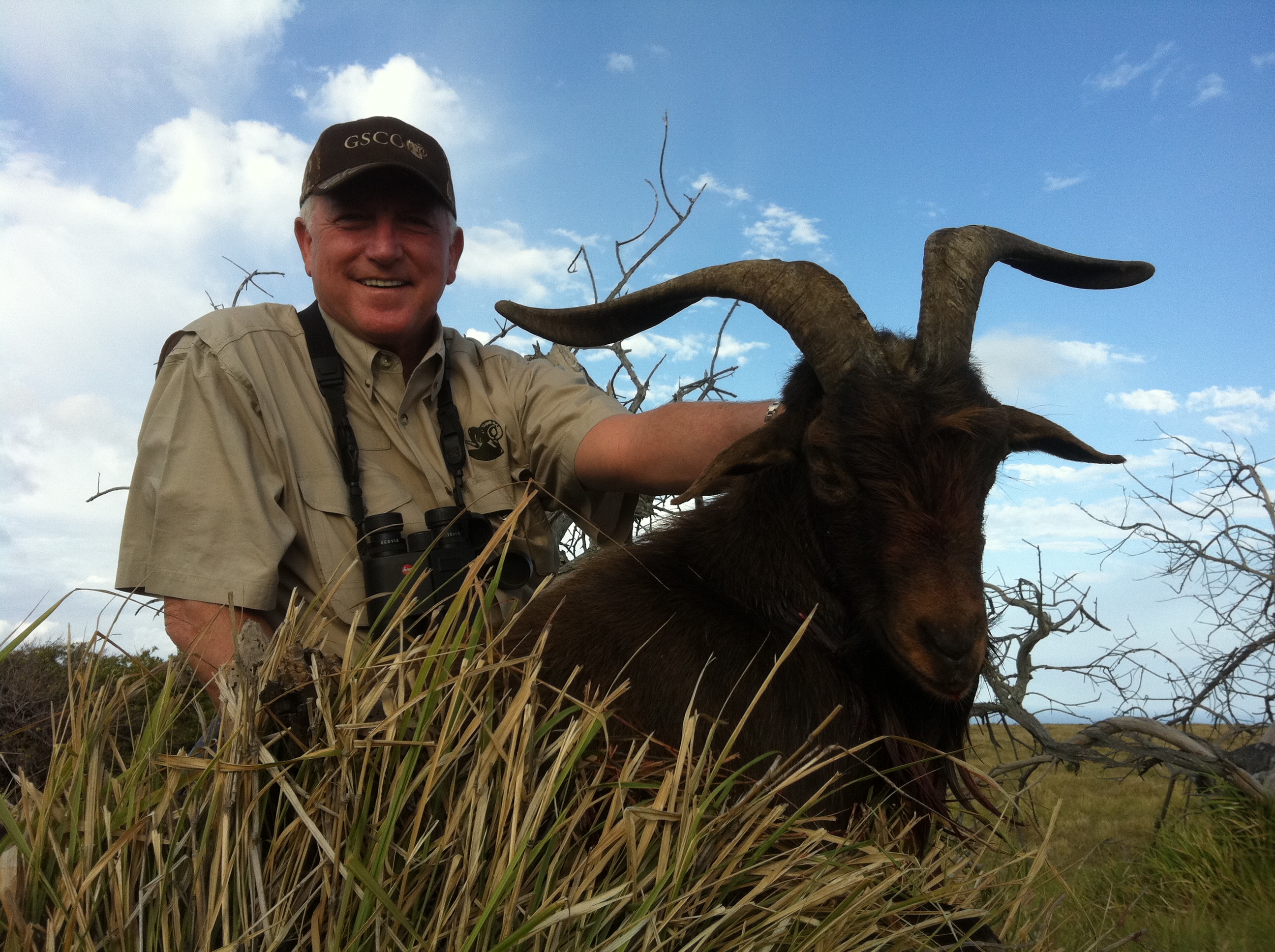 Denis Cambell and I had a great time hunting Sheep and goats on the Big Island. We hunted sheep in the morning and goats in the afternoon. We had good luck getting both the first day. It was good to get the Hawaiian Ibex first. Only 10 percent of the goats are this ibex style so it was good to see one. We went back south the next day and got this nice spanish.