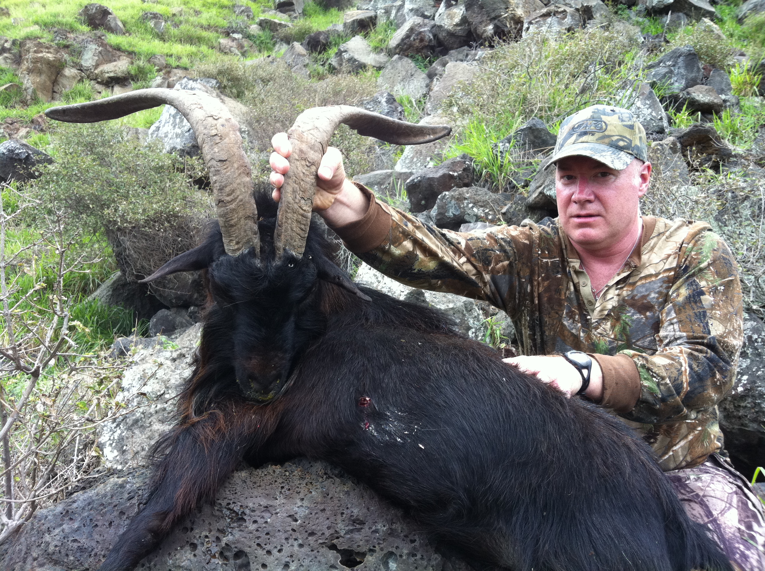 Today we got a nice sheep right off the bat in a nice herd we found early.I was a nice set up and a great shot. It set us up great for our afternoon goat hunt. We found a nice Billy mid afternoon and Robert made a great shot. We had a bit of a hike but we got ’em. Great day.