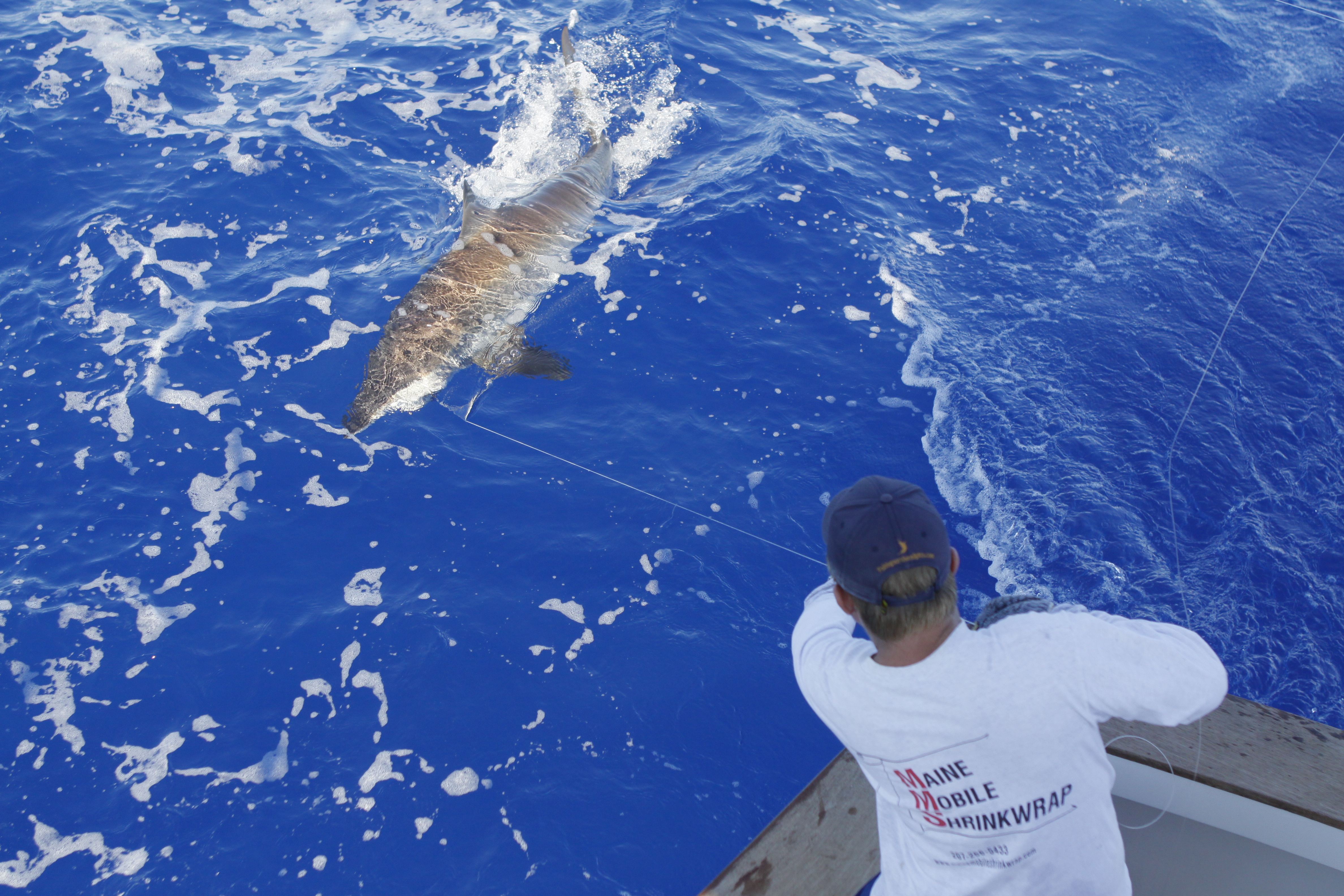 Checking Otecby Captain Kevin Nakamaruin 2011 Catches, Hawaii Sport Fishing, Kona Fishing Photoson Posted on September 24, 2011September 24, 2011 We checked the Otec Buoy and live bait the buoy for 3 hours or so. We gave it a good look and didn’t get any bites except for this shark we got. It acted like a marlin the whole time but turned out to be a shark. Good warm up for Ann.