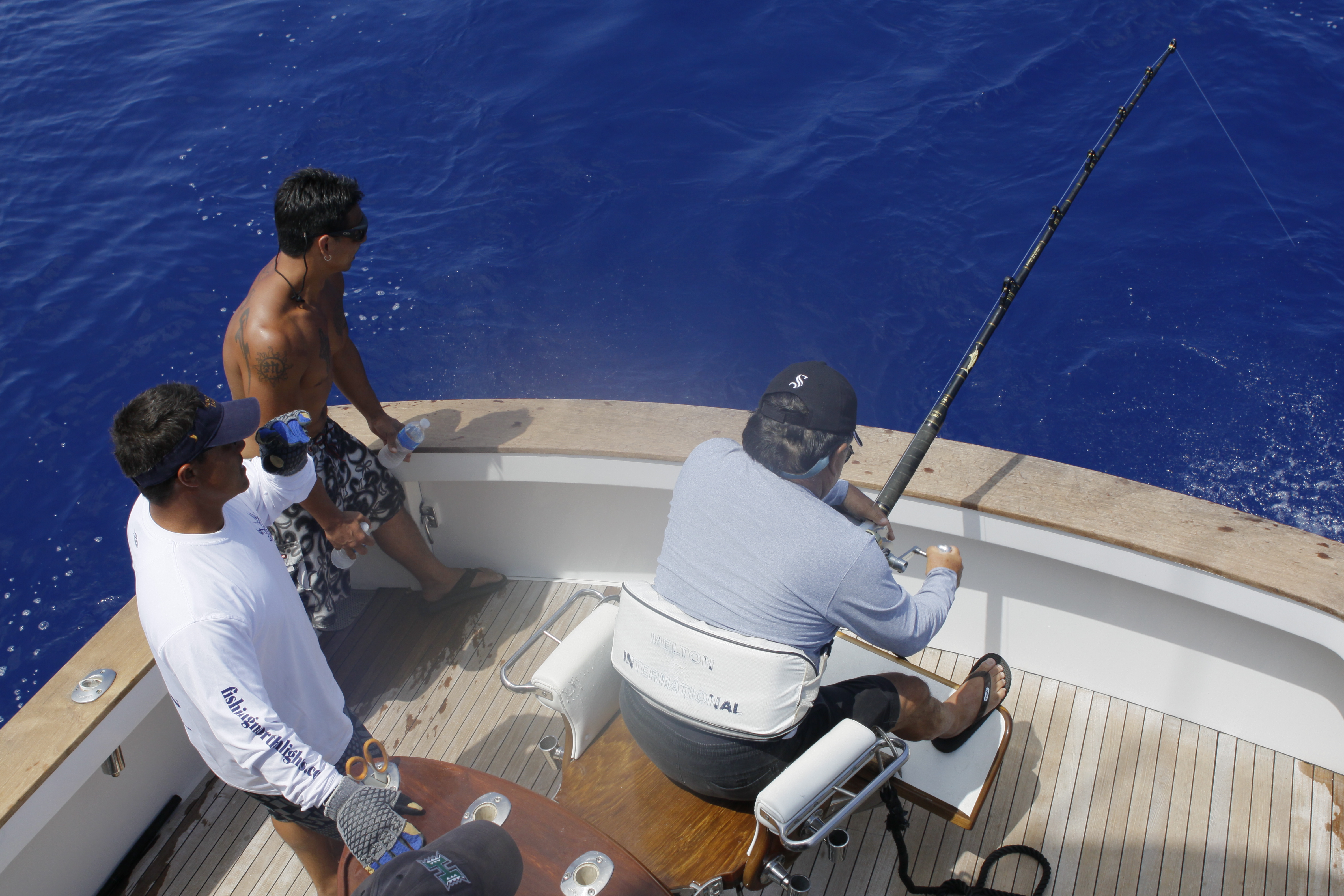 Jeff Hara of J Hara store and Steinlager did a promotional drawing during the holidays for a drawing to win a trip on the Northern Lights. Jeff and his winners were out with us on the boat. We fished far south and found the fish in the calm waters of the lava flows. After lunch we finally had a bite and got it stuck on the long rigger. After a short fight we got he fish and were on the way to our second bite. We marked a fish on the sounder an hour later and had what looked like a marlin mark streaking up. Sure enough it was a fish. A nice marlin over 600 pounds that jumped as soon as it bit. Unfortunately it jumped off. We had no other bites the rest of the day and ended up having a few Steinlagers after fishing.