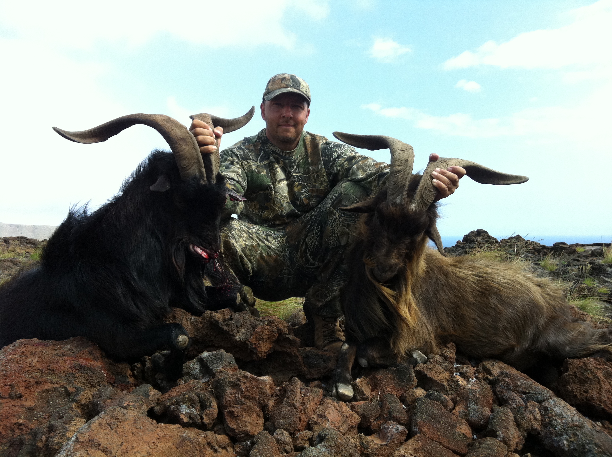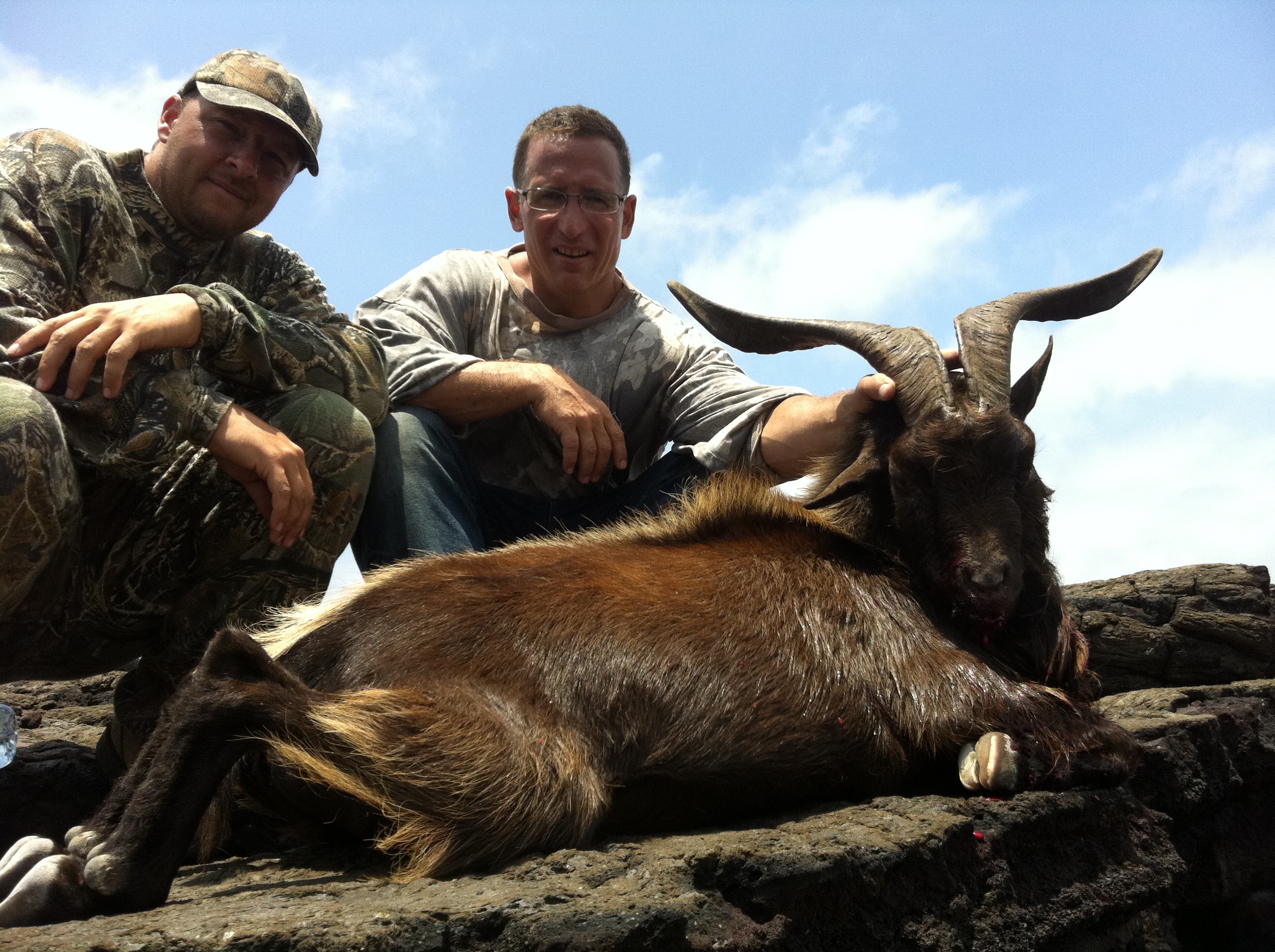 Here you see the boys from Paq Inc with some of the animals they got while they were here. One the most memorable hunts of the trip was a goat hunt where Tim Chris and I made a challenging walk deep into the lava fields to find these nice goats. The sheep Tim got was one of many we saw that morning.
