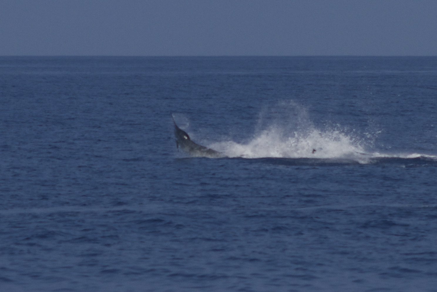 We hunted and hunted for spears and found that they really are rare billfish especially in Oct. It was a tough thing to do but we kept fishing hoping for the luck that Sandra has in fishing. She has caught a lifetime of billfish in a short time. Her accomplishment over the last 35 days fishing was unbelievable. Many of the billfish she caught in her quest were caught out of season. We kept hoping that her luck would continue for the spearfish. Her fishing luck proved to come through for her today on a really nice blue. I marked the fish shallow and we watched to see if it would come up. The fish did exploding on the short bait. We missed it and it went and ate the long corner. Chip Van Mols got the lines clear in time to release the fish in about 15 minutes. Chip had a good pull on the leader and did a great job. We got photos and released the fish at 600 pounds. My camera card got full and I didn’t get the greatest shots but got these before it tapped out. It really bummed me out that such a large card got so full so fast.