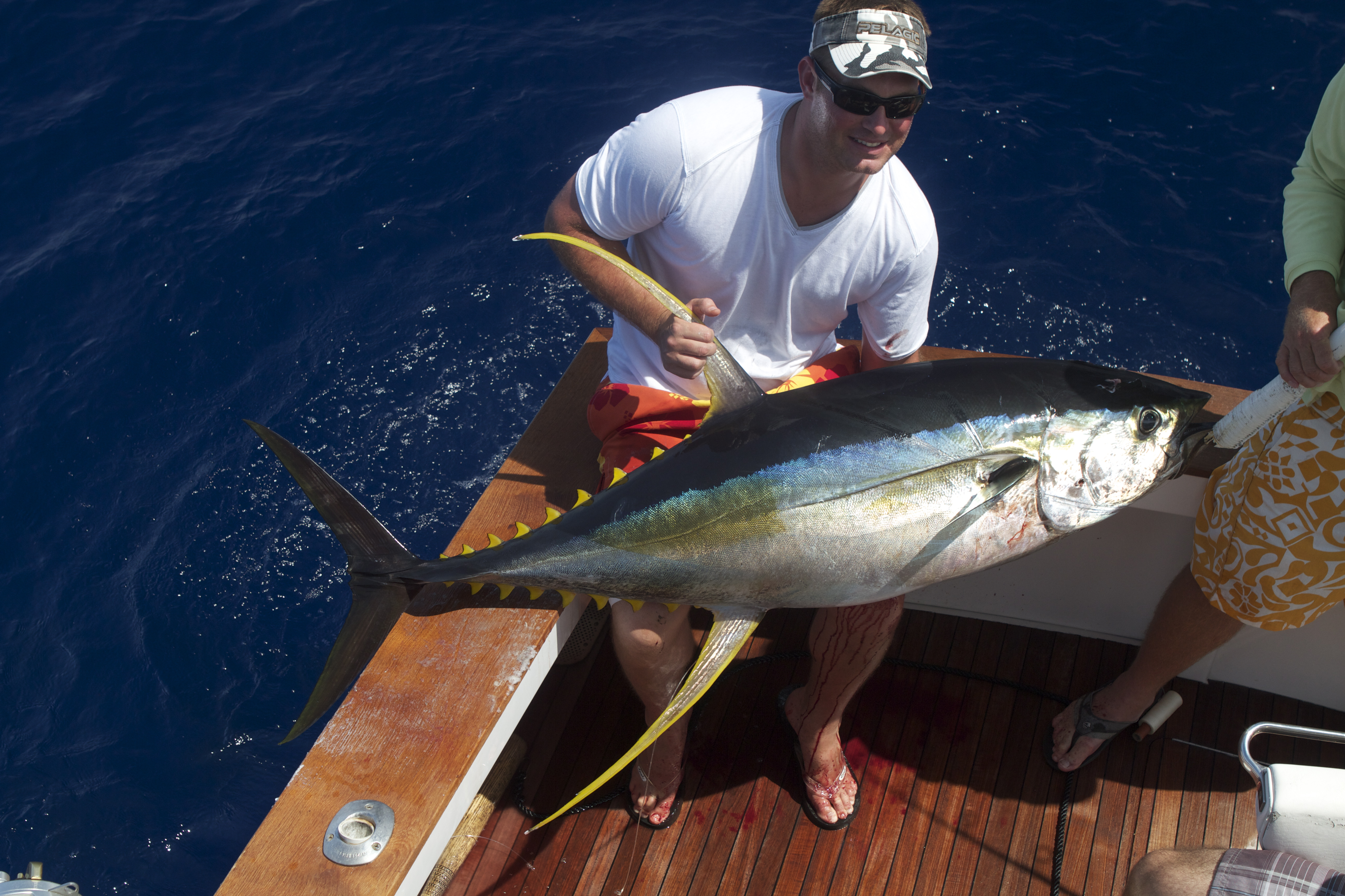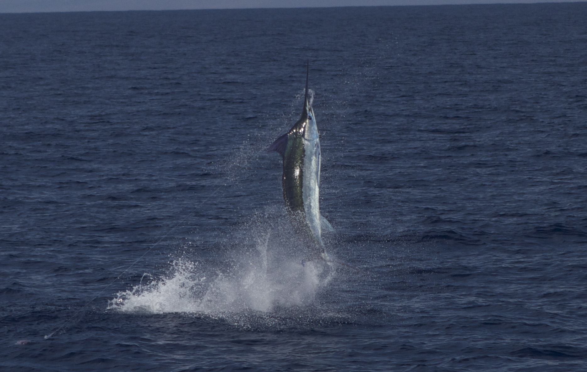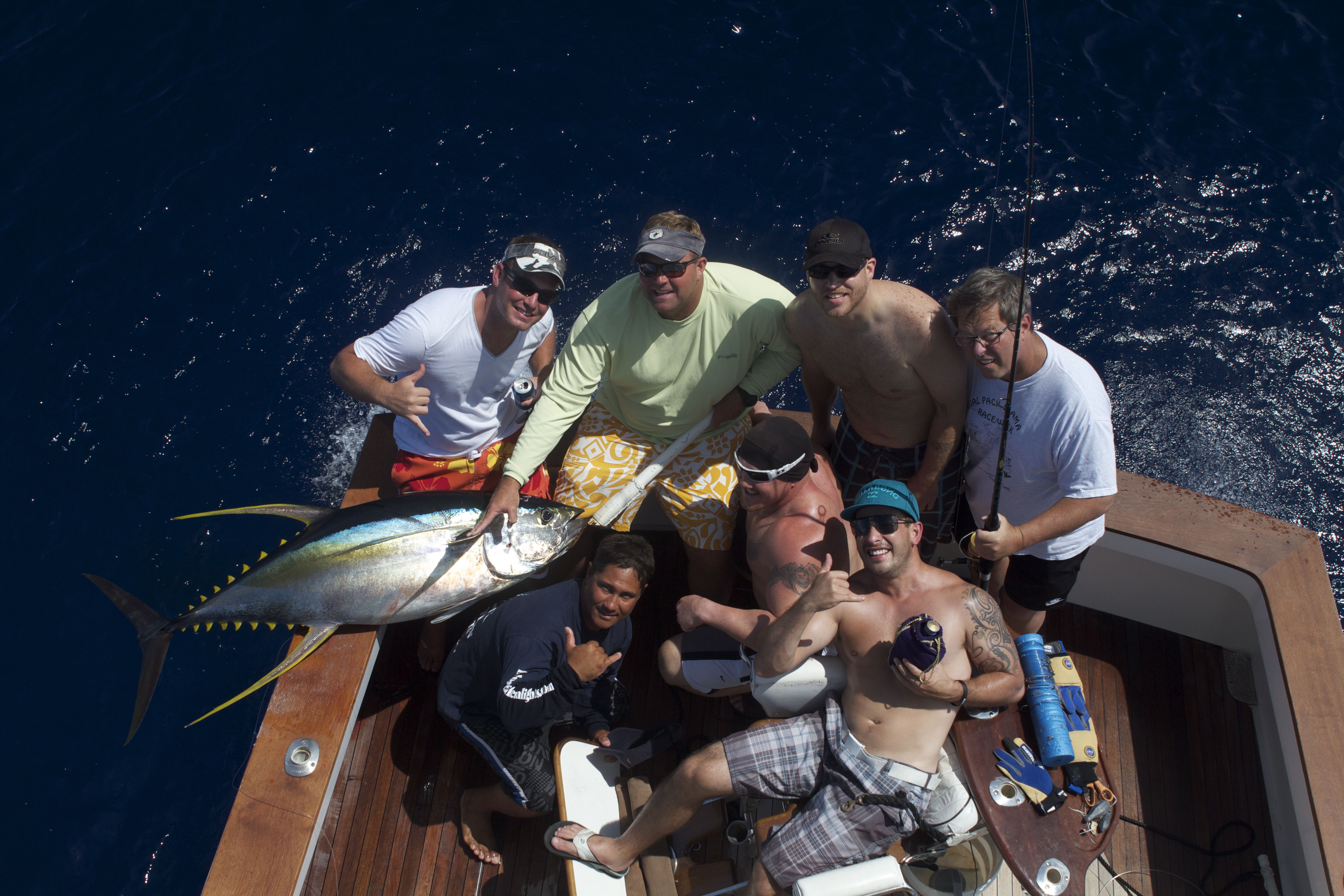 I got back from Nova Scotia and had to go fishing right away. I was afraid of the jet lag but it turned out to be fine. Capt Brain Balanico came with me to take this wedding party out for the day. We started off great with a nice Mahi and on the way back from the buoy we caught the mahi at we found the porpoise and caught this nice tuna. It was a lucky bite because we had to leave the ahi to get back in time for the rehearsal dinner. We ran back for a ways and set out the lines. An hour later we had a nice bite on the short rigger. One of our plungers went away as the fish took off on it first run. The Marlin jumped about a 100 yards out and we saw it size. After a 35 minute fight we caught a 560 blue Ryan the angler mounted the blue for his house in Colorado. A great time with a nice group on a special day. Best wishes to the newly weds and congratulations on a great day of fishing.