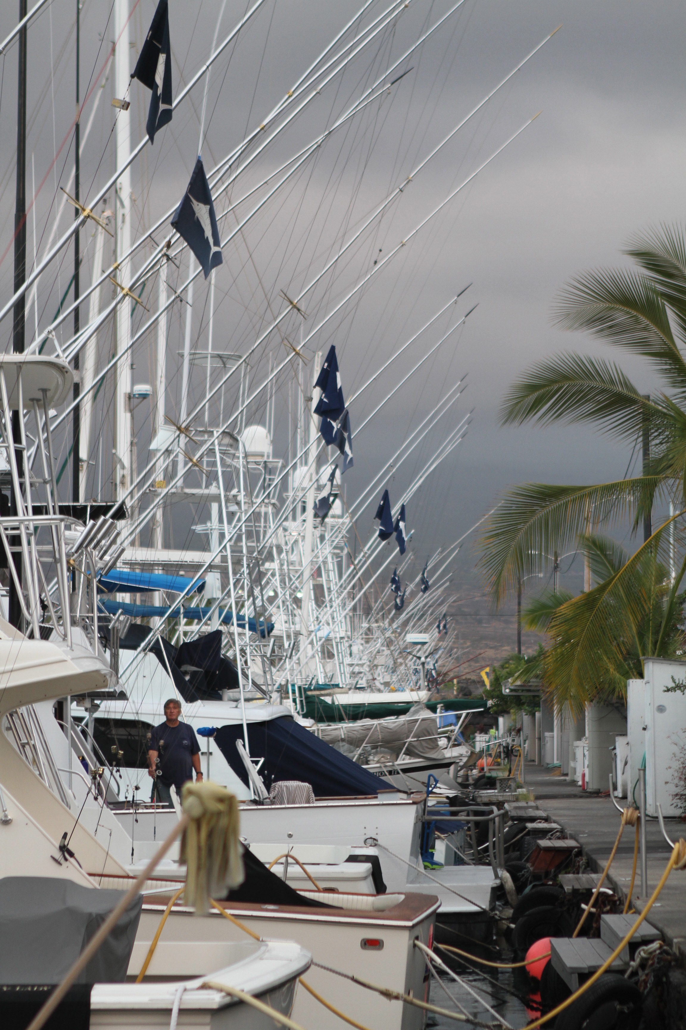 Flags fly At half rigger to honor the recent passing of veteran Captain John Lanes Sr. It is a great loss to the Kona fleet. The patriarch of the well known Llanes family , Llanes fished the Kona coast most of his life fishing with many of the legends of charter fishing here in Kona. Fishing as a mate and captain at the beginning of the charter fishing here he saw the fishing evolve from the beginning. He ran a very successful charter business which his son Randy now runs on the Sundowner. He was a good friend to me and my dad Kent and always was happy and friendly with everyone he came in contact with. We will really miss Uncle John. We send our aloha to the entire Llanes family for the loss. Services will be held on March 3rd.