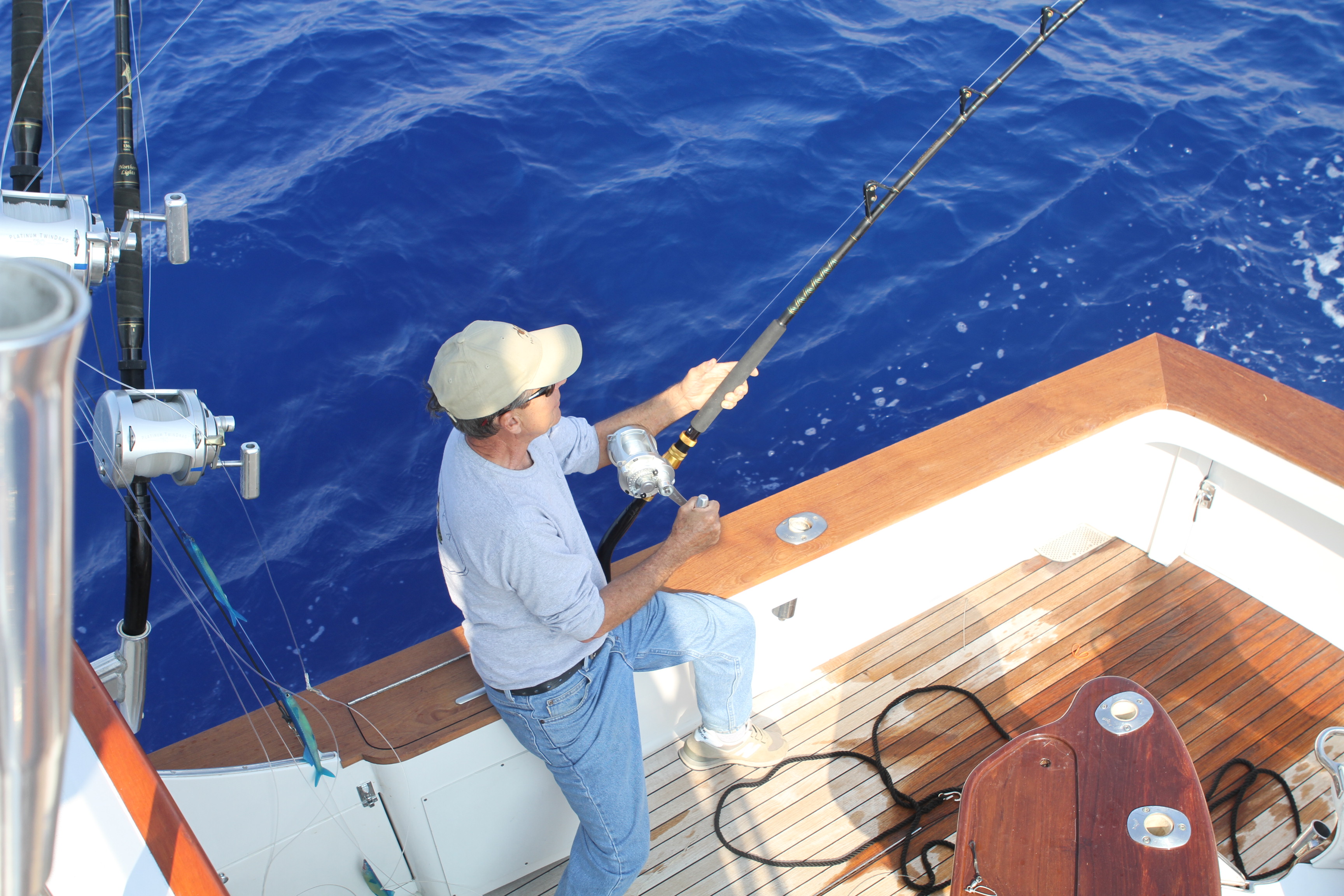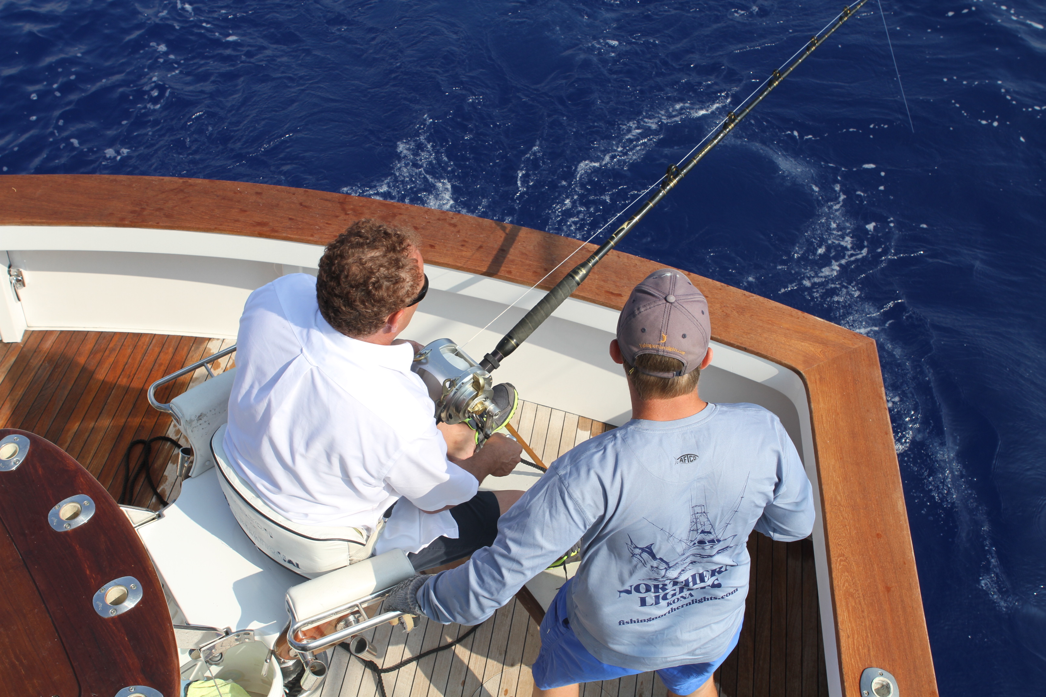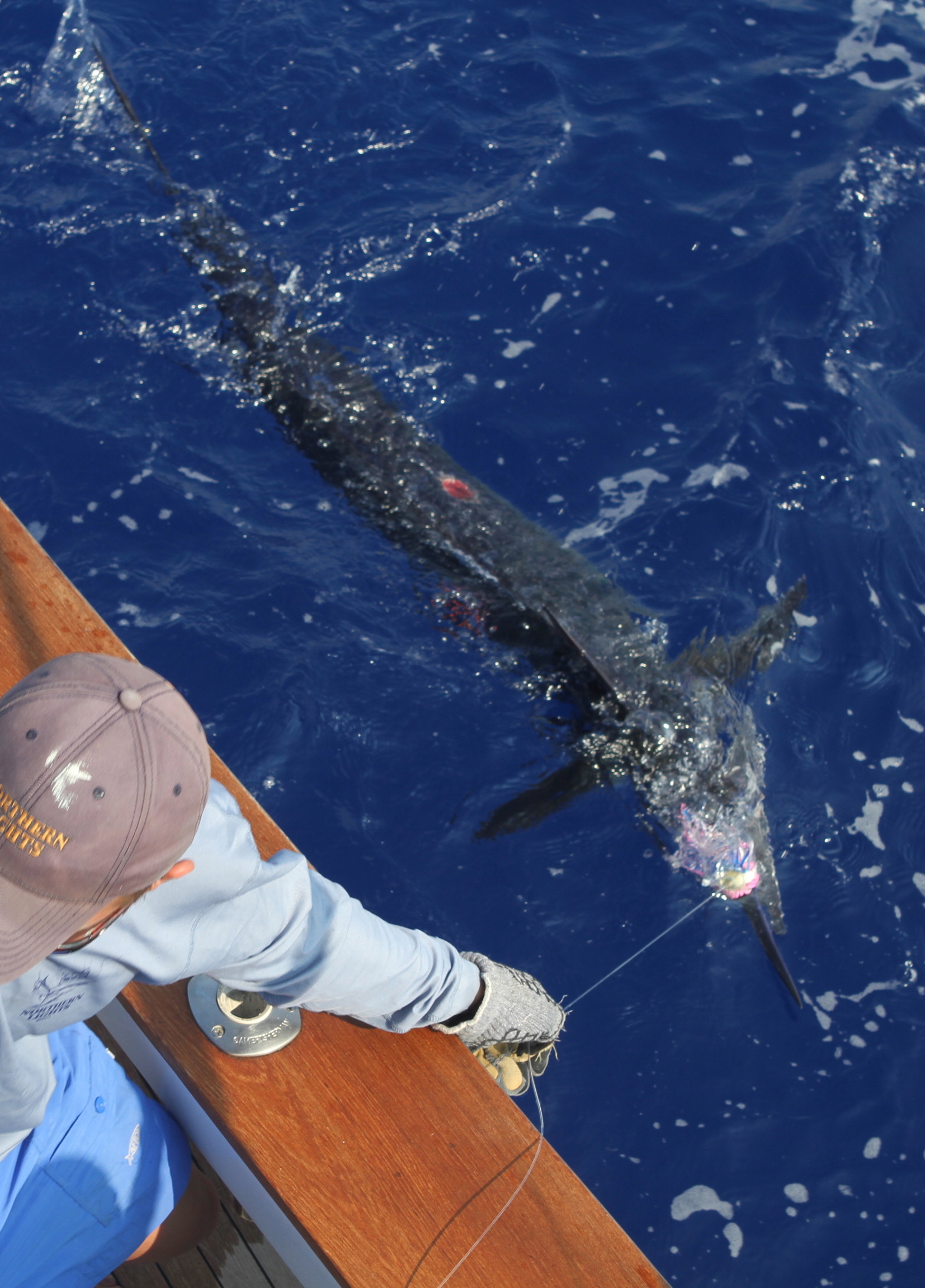 Here you see a crazy double blue we caught recently. It was hard to make sense of for a minute but in the end we tagged two little blues. After a long day of trolling 2:30 brought us the day saver.