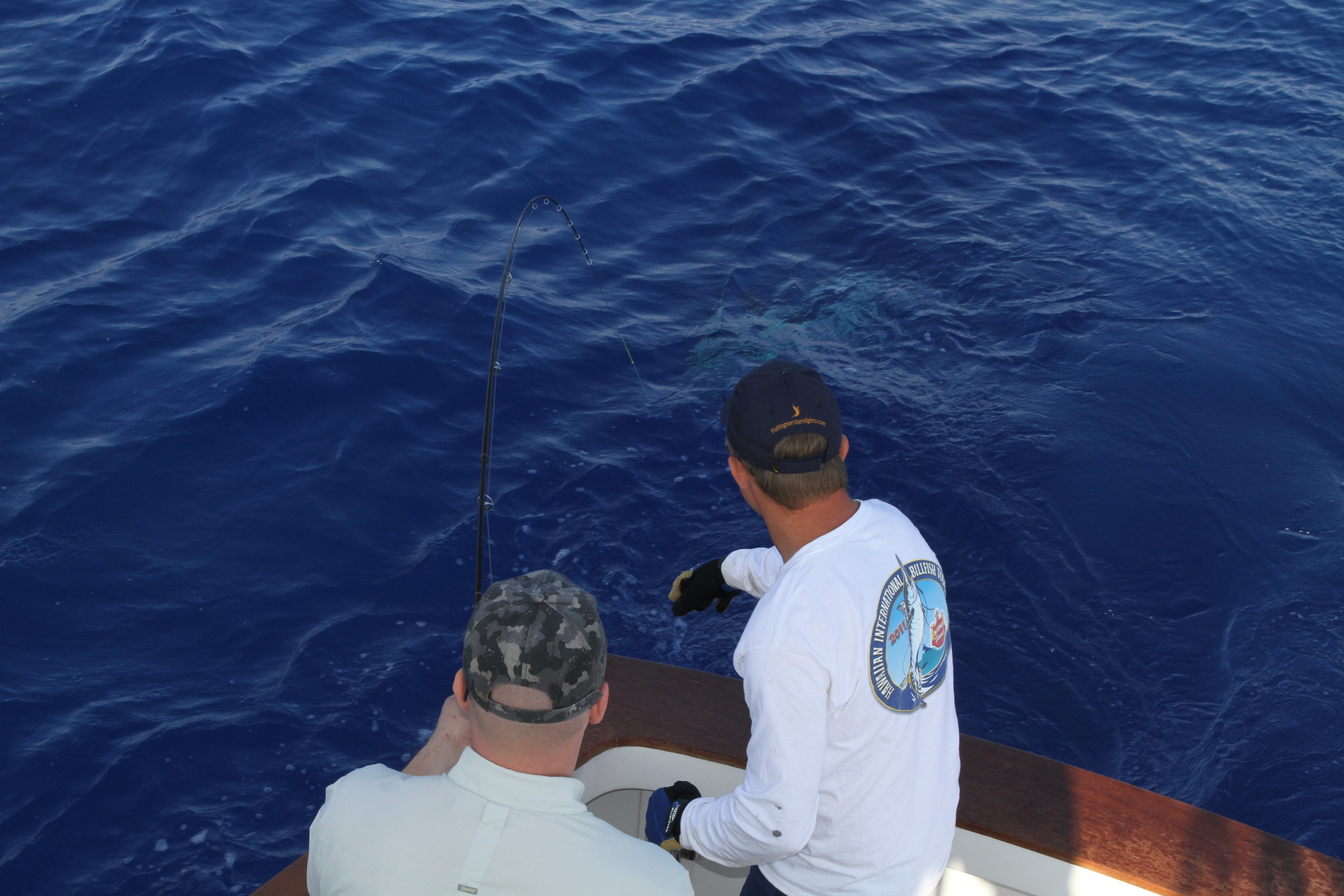 Ken Killian of Alaska caught this nice Striped Marlin in the fly with us on the Northern Lights. We got hooked up on the second Stripey that came to the pattern. We teased him to the corner and got the fish to switch. After a 15 minute fight we got the fish by the bill and lifted him out for a picture. We had 7 or 8 up that day making it a perfect day for the fly. We had a bunch almost switch but every time they got close we didn’t get them hooked. They were all perfect size for the fly and teased well. For once the right fish for the right mission were here today. It was fun to have it work out for Ken.
