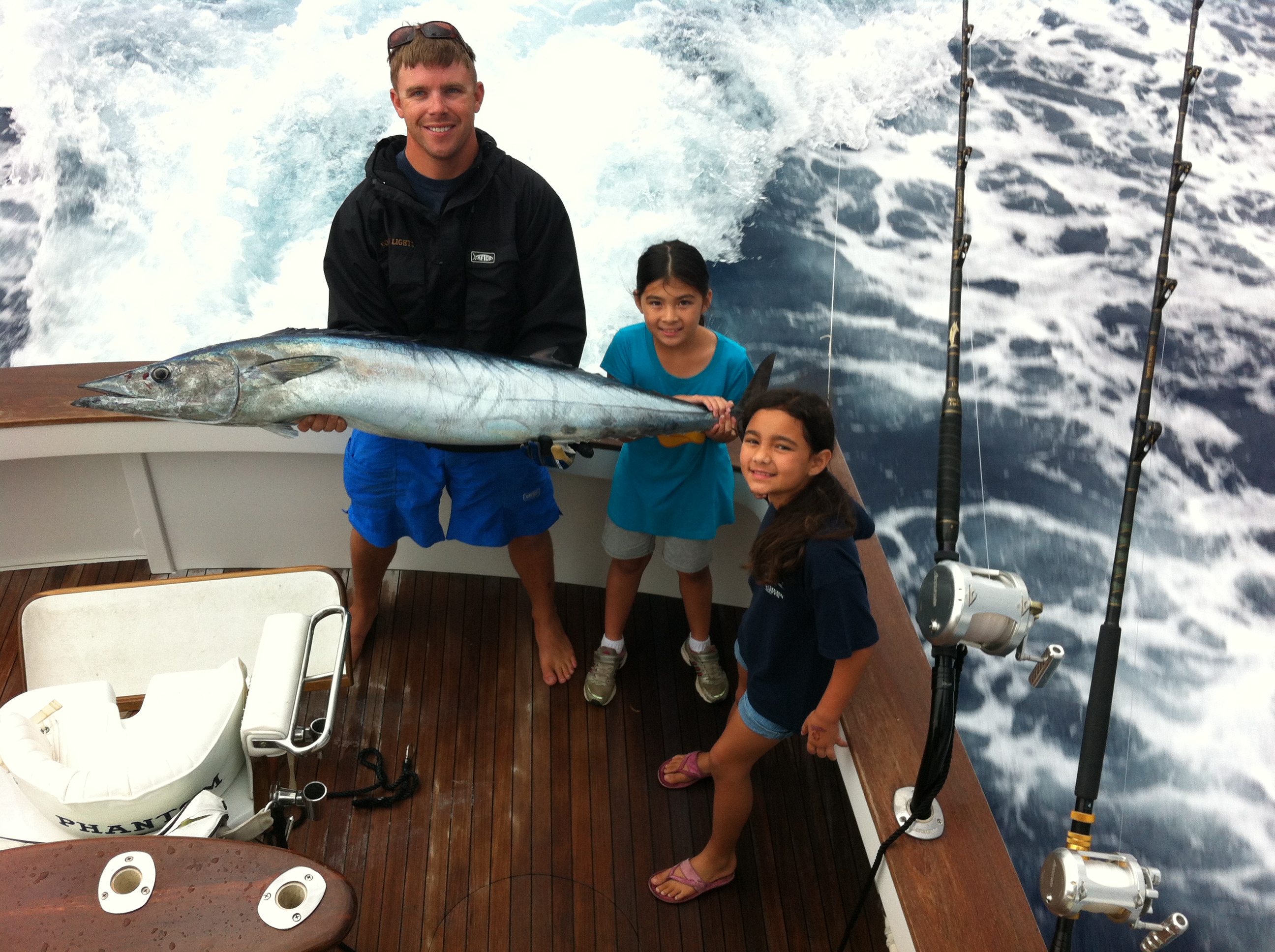 Gabby and friend Jordan came out for an early morning troll for ono. Our plan was to fish for marlin offshore after we tried for ono but the girls got sea sick so we went in early. Friend Pam Basco joined us for the morning. It was frustrating to not be able to go offshore but Mat and I got a bunch of maintenance done once we got in.