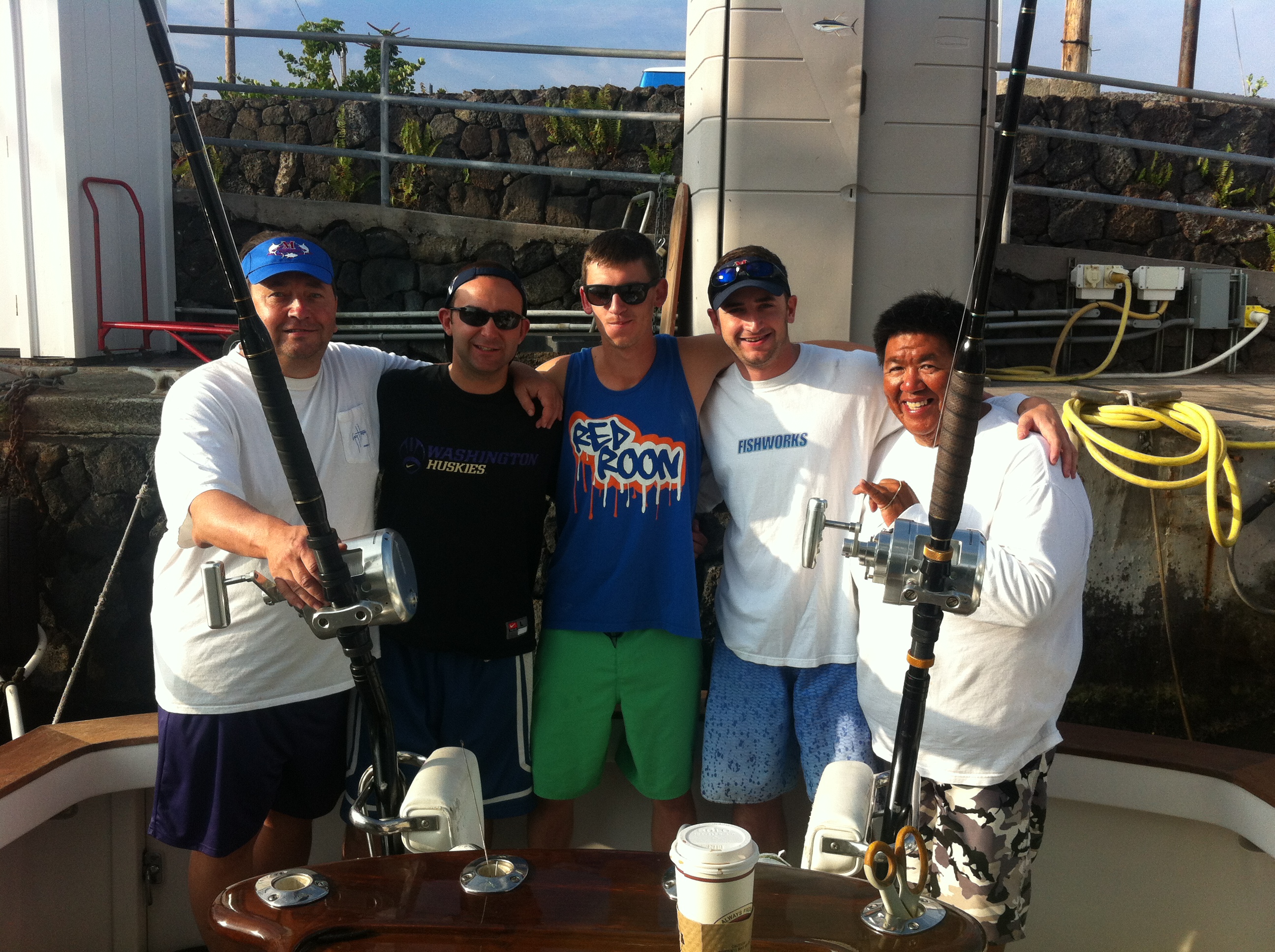 Doug and Reece Andersen and friends jake and Phil joined us for the Rock and Reel tournament this weekend. We had a great first day leading the 500.00 daily until the last hour of the tournament with a spearfish tag. Right after we let the spearfish go a really nice fish came to the short bait. At first it looked like it was 450 or 500 pounds but turned out to be a lot bigger. The fish missed short then dropped back and got hooked on there short rigger. Reece took it to the chair and jumped twice at the boat. Lunging forward you could see the girth on her and she was easy over 700. What a nice fish only to pull the hook. There wasn’t a scratch on the hooks or lure. Day 2 we had no bites. It was slow for the fleet. The big winners were the Lightspeed with a 693 edging out the rod Bender’s 690 blue.