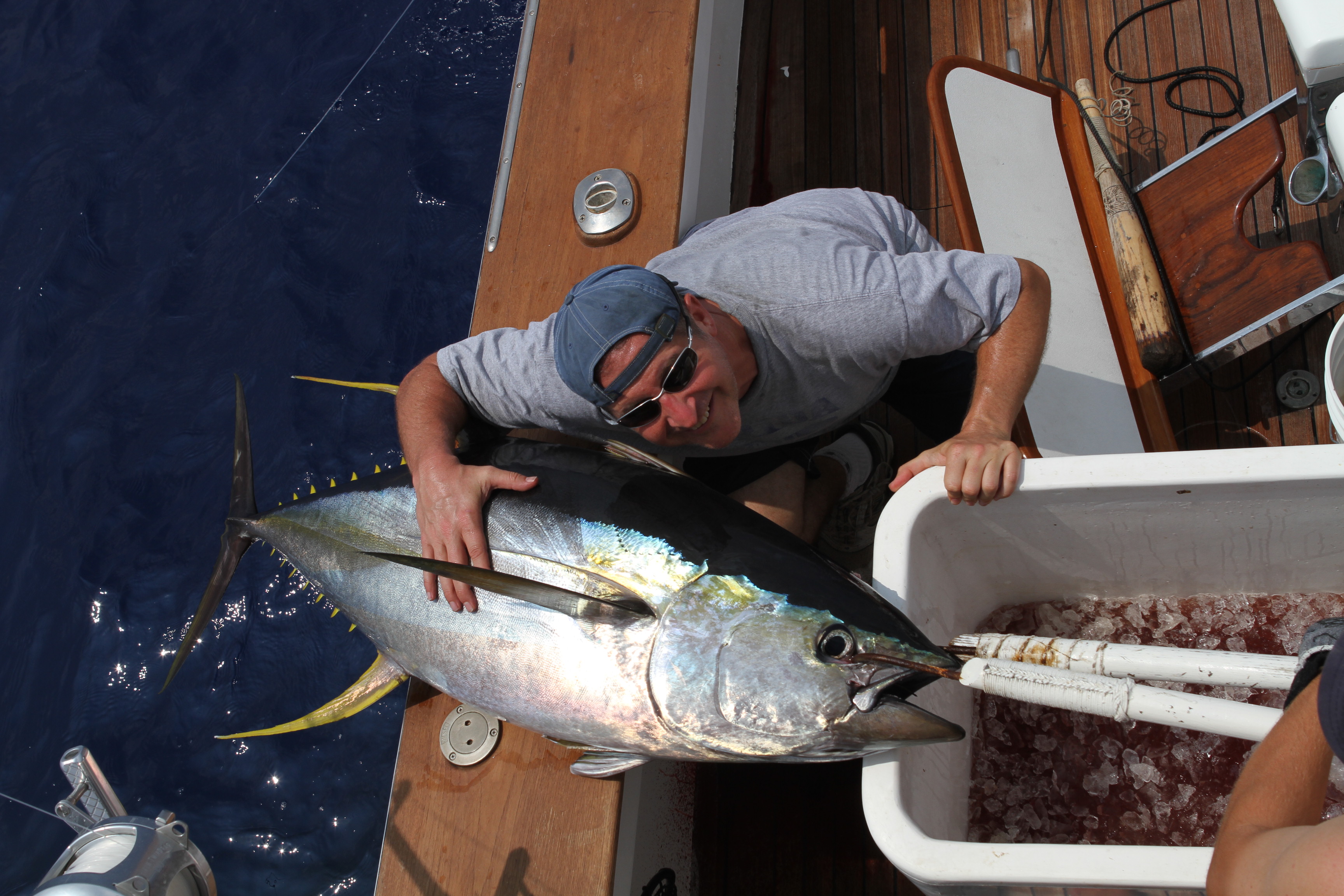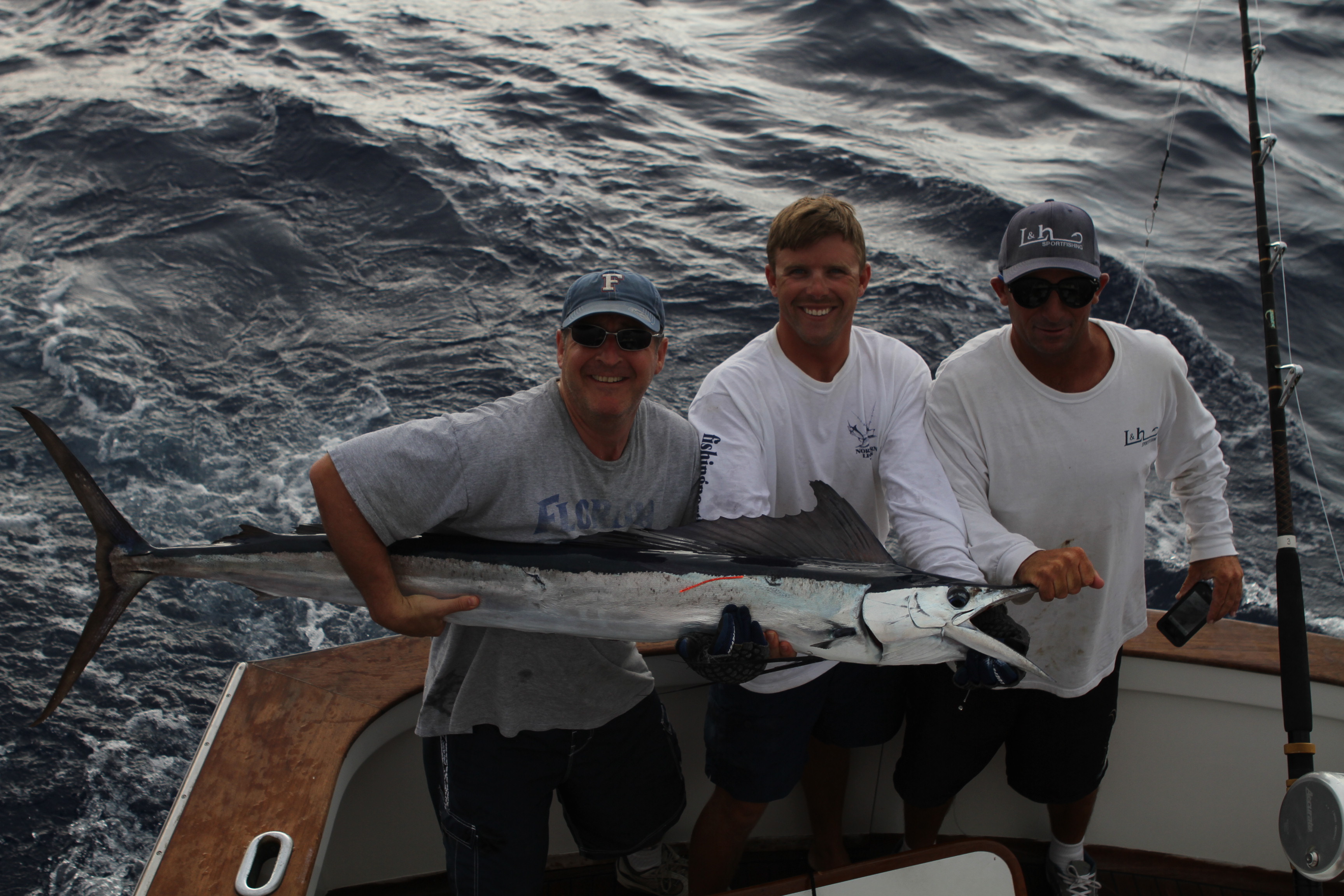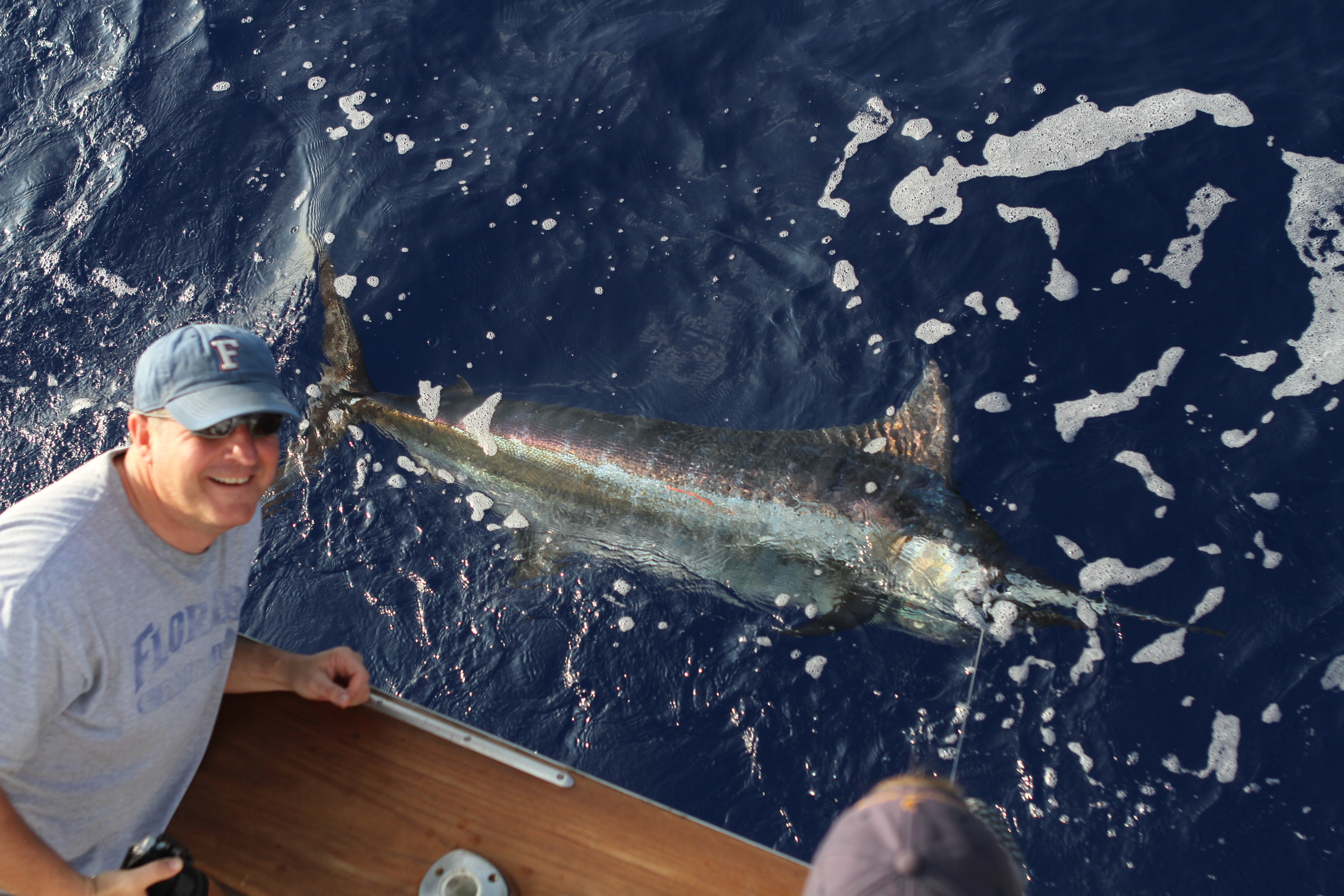 Today Larry Goldstein caught his spear on the way to his billfish slam. Having fished all over the world he has caught the world’s billfish species and got his spearfish here in Kona on the Northern Lights. It has been a great year for spears for us this year. They trickle in and we have been getting them more than usual. We got off to a great start with this small blue before 8 am. we went to the dolphins where we caught a 140 pounder and a 90 pounder. Late we had 2 blues up at once and had a 3rd get hooked up. We struck out on the first 2 blues that were up and had the 3 rd end up being a spear. The odds of having 2 for sure blues up at the same time then hooking a 3rd and having it be a spear crazy luck. Great guy great fishing !