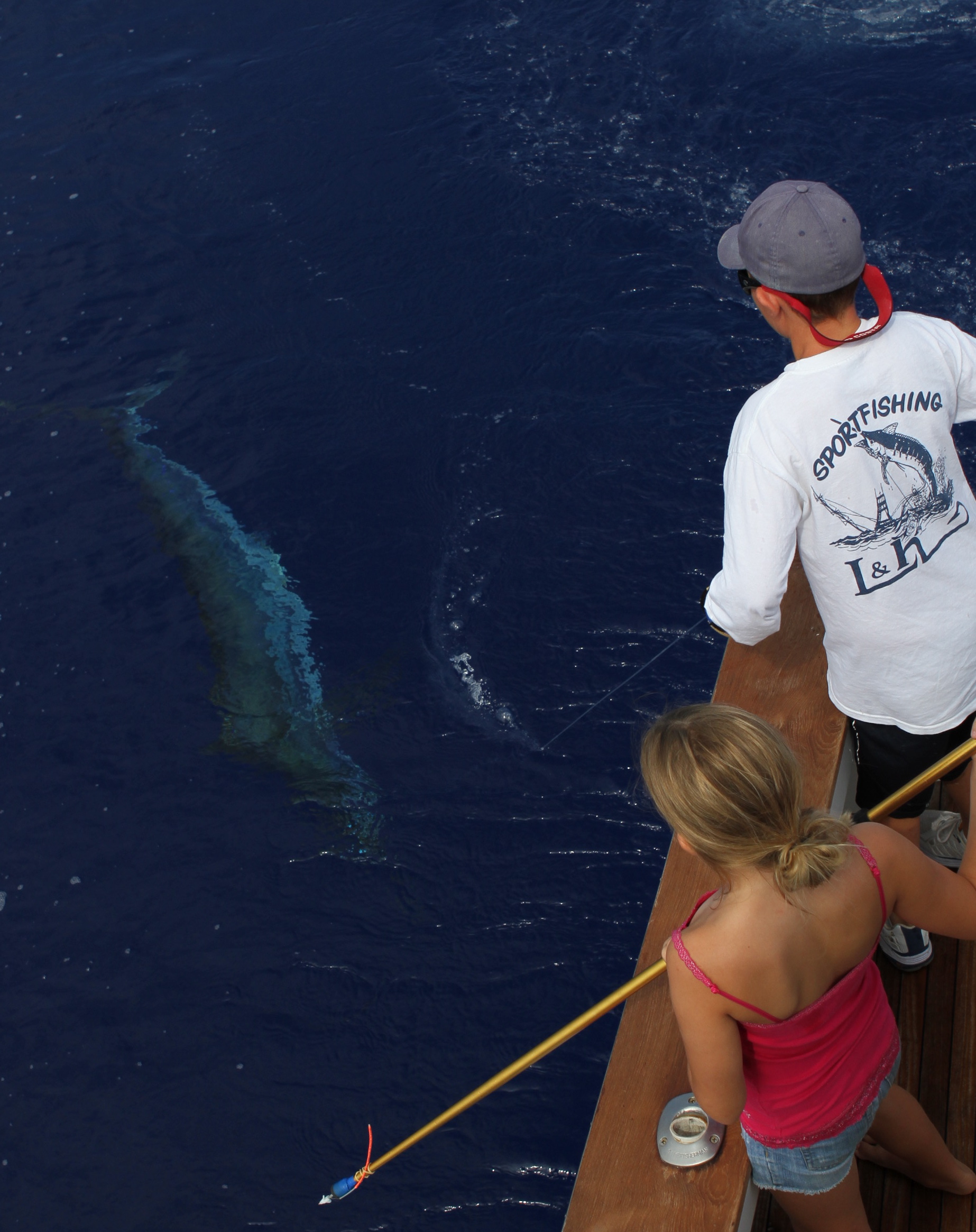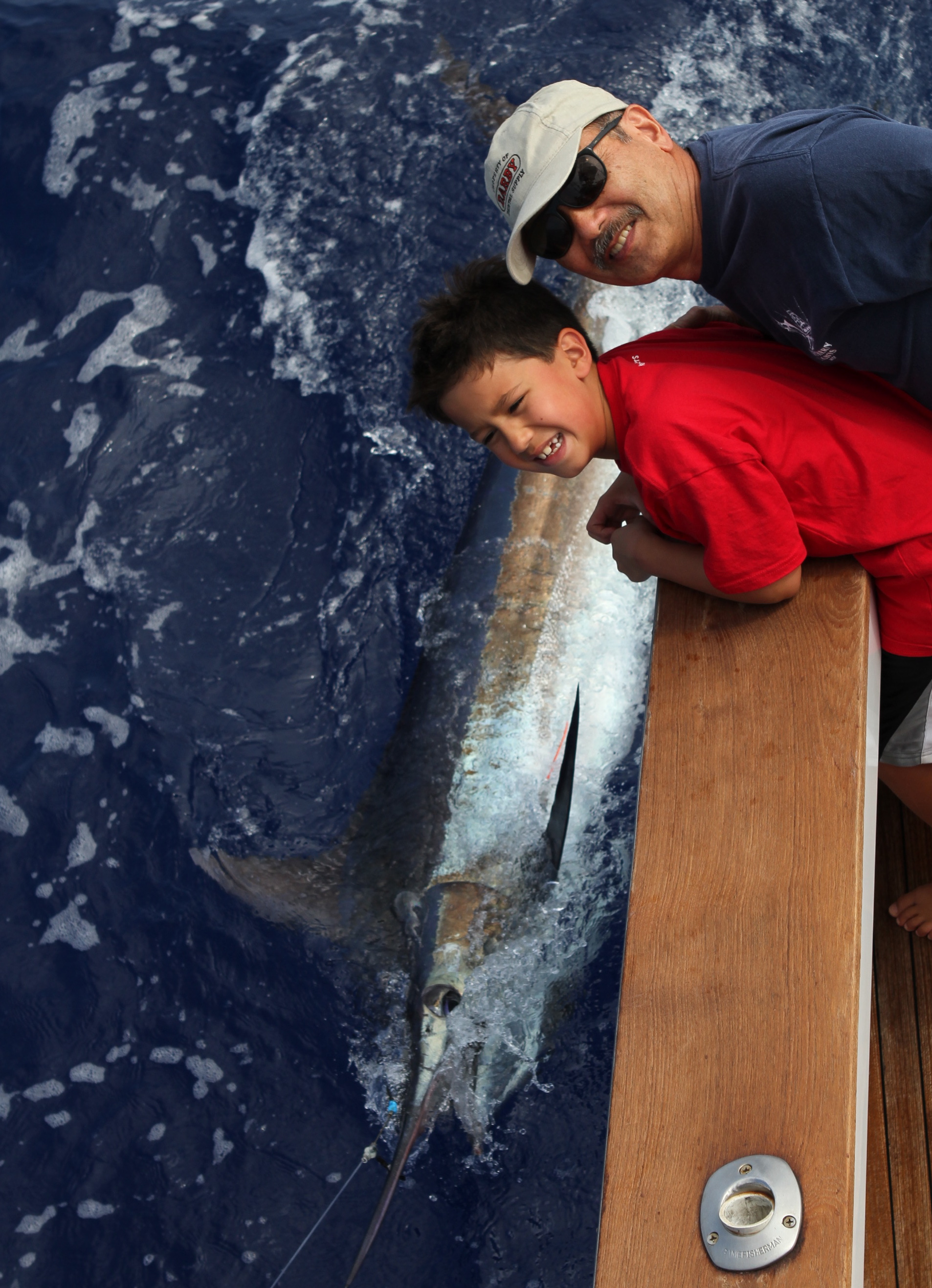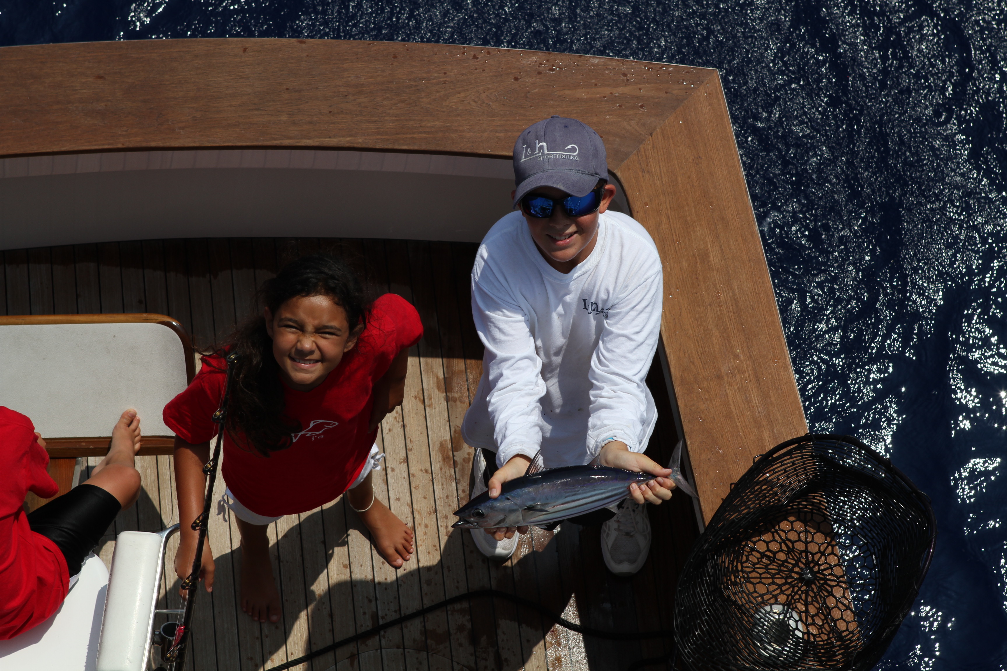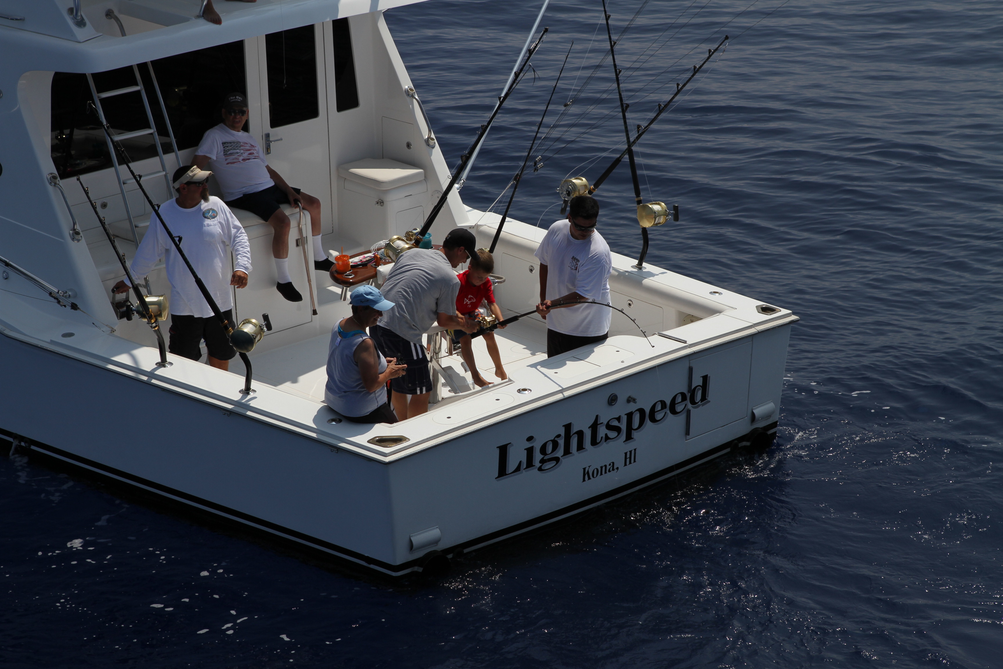 The Northern Lights Keiki Tournament was a example of the right day for the right event. My mom picked the day and it proved to be the perfect day for the kids. The Northern Lights 40, Northern Lights 37 and the Lightspeed set out to get small fish for the keiki and what a day for that. Alex (age 9)my nephew caught his first blue wired by 13year old James David. Juliana Nakamaru(age 7) fought a small blue with Capt Mat and uncle Jimmy only to jump off after a bunch of jumps. Andrew(age 7) caught a nice otaro and a nice Ono. The 3 boats caught a total of 38 Mahi Mahi at 2 different floaters along with over a dozen aku caught by Gabriella Nakamaru (age 10), Laurel David (age 10),Obrey Weaver (age 9), Taylor Eberl(age 7)and Christopher David (age 4mo).