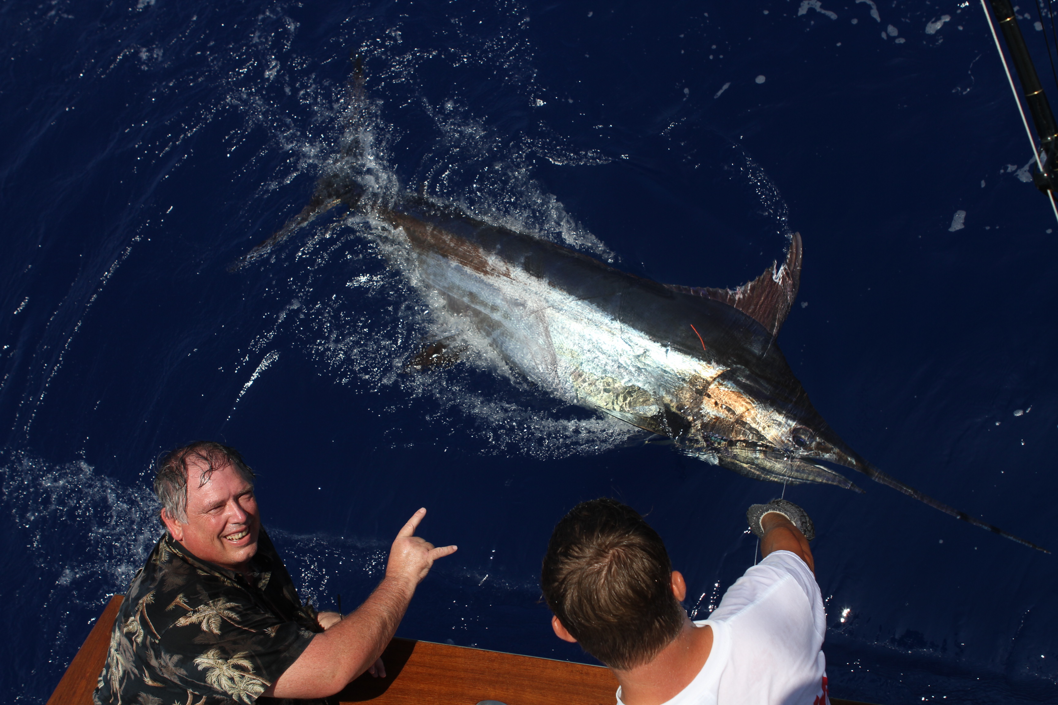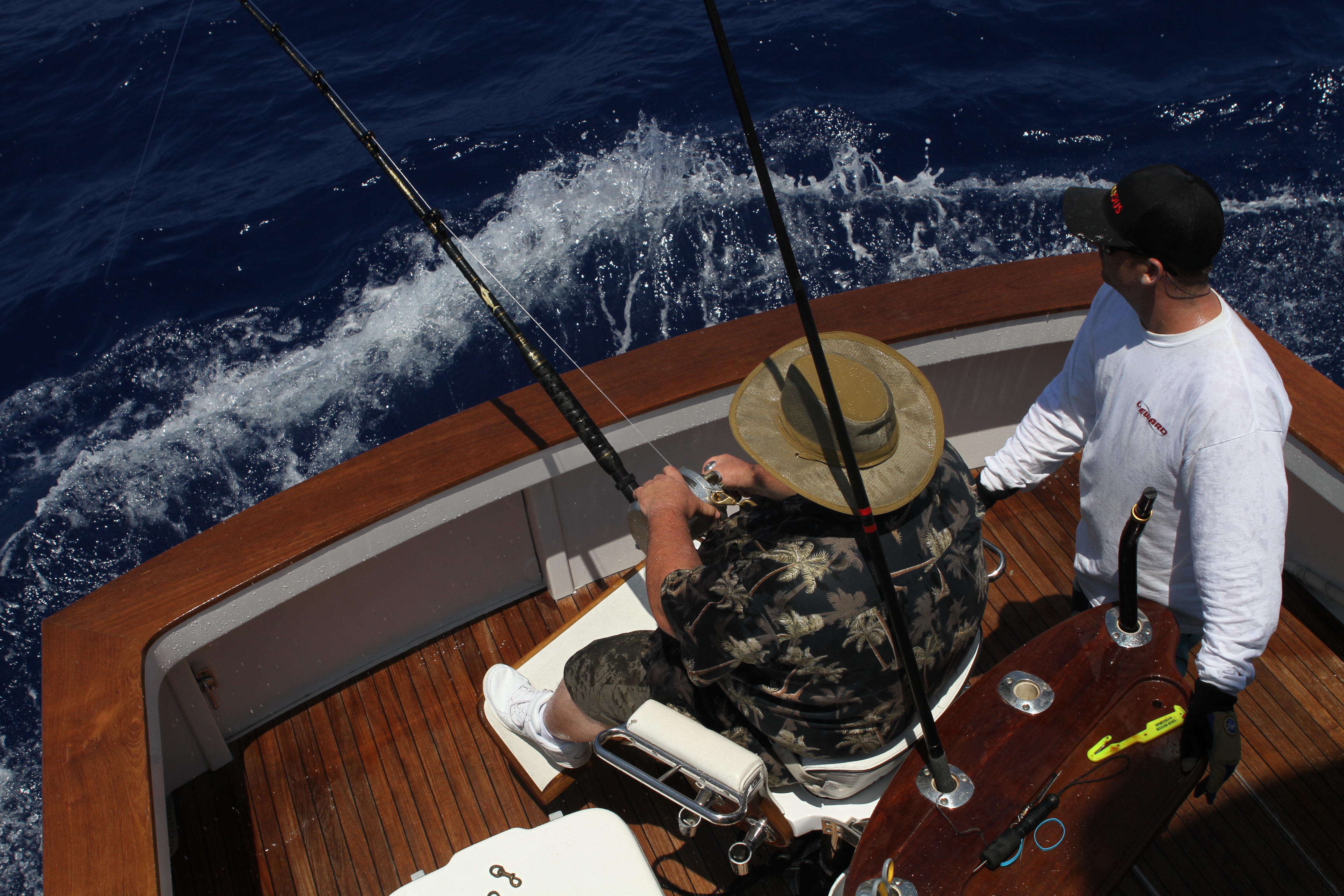Ron Willet friend of James “Bubba” Brown flew over from Oahu while on a family trip from Texas caught his first blue with us this week. We trolled in the morning missing a few blue on the grounds. We didn’t get good bites out of them so we went and caught a bait. We caught 2 nice sized ones and took them off the ledge. We got bit 10 minutes later on the downrigger. Freddie David tagged the fish